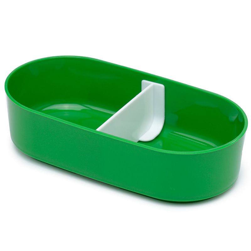 Съставен от долна зелена основа с бял отделен капак. Горният за композицията капак затваря голямо също зелено отделение, преградено от подвижна бяла стена. Съдържа селени прибори (вилица и лъжица), лежащи в собствени гнезда на отделна основа.