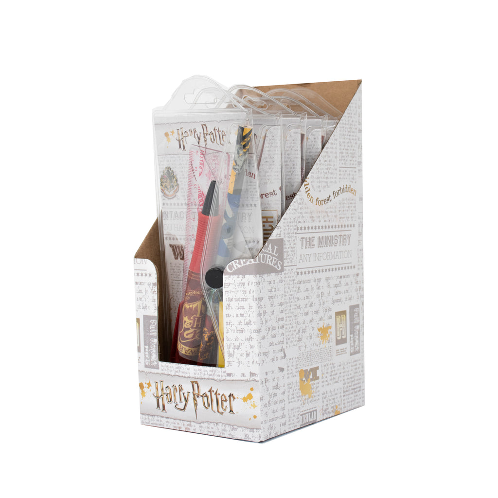 Комплект, съдържащ всичко най-необходимо за ученика. Прозрачният несесер съдържа линия, острилка, молив и гумичка, като всичко е на Harry Potter тематика, само за най-големите фенове.