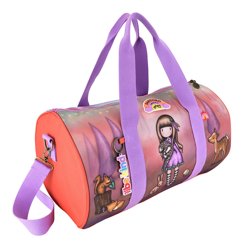 Спортният сак Santoro Gorjuss ,,Be Kind To All Creatures” побира всичко необходимо за спорта, който практикува вашето дете. Той има 1 голямо отделение, в което има три малки джоба. Разполага с 1 страничен дълбок джоб. Затваря се с объл метален цип. Отстрани има закачен гумен ключодържател с надпис ,,Be Kind”.