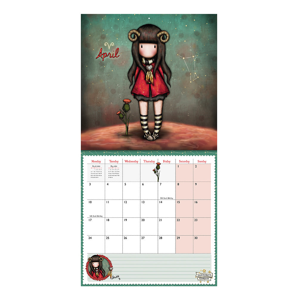 Организирай задачите със стенен календар Gorjuss Zodiax. В него всеки месец може да се насладите на различни Gorjuss герои, с място за писане на вашите планове и удобен раздел за бележки в долната част на всяка страница.
