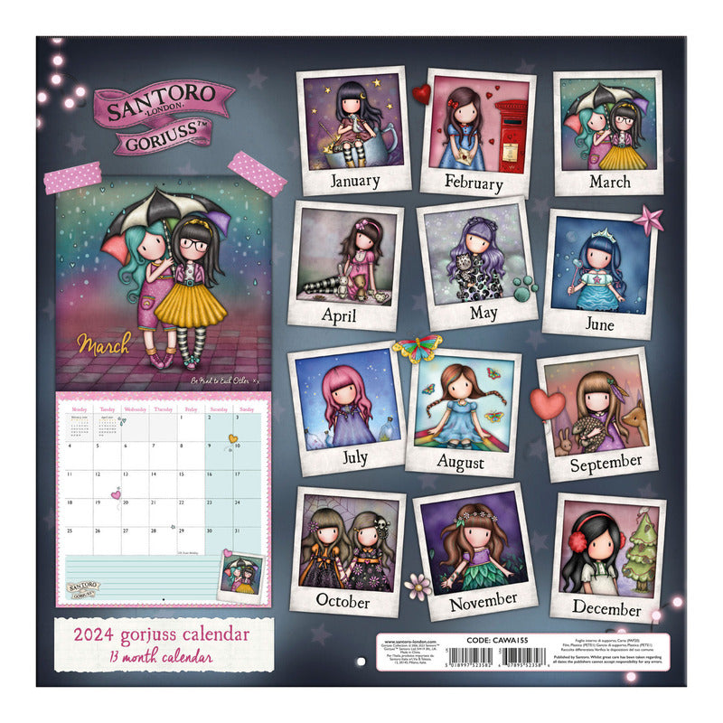 Организирайте задачите си със стенния календар Santoro Gorjuss Fairy Dusk. Има място за писане на вашите планове и удобен раздел за бележки в долната част на всяка страница. Всеки месец може да се насладите на различно Gorjuss момиче.