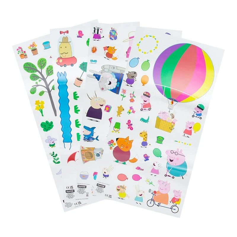 Комплект от 7 листа водоустойчиви и преместващи се стикери за стена Peppa Pig.