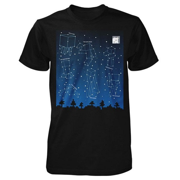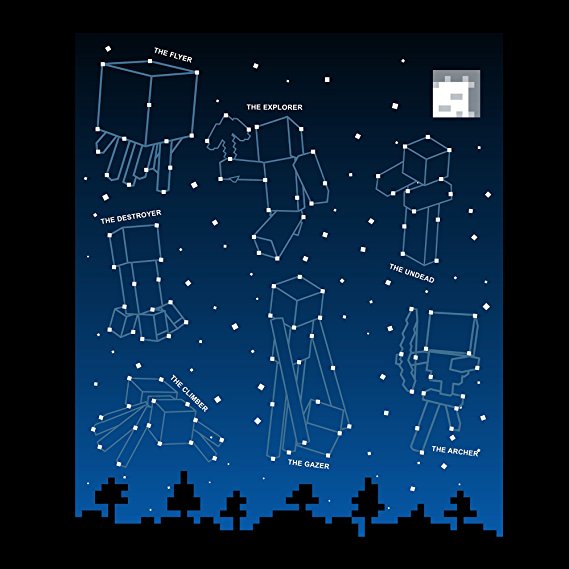 - Светещи герои на Minecraft. Гаст, Стиив, Зомби, Криипър, Паяк, Ендерман и Скелет, като небесни съзвездия