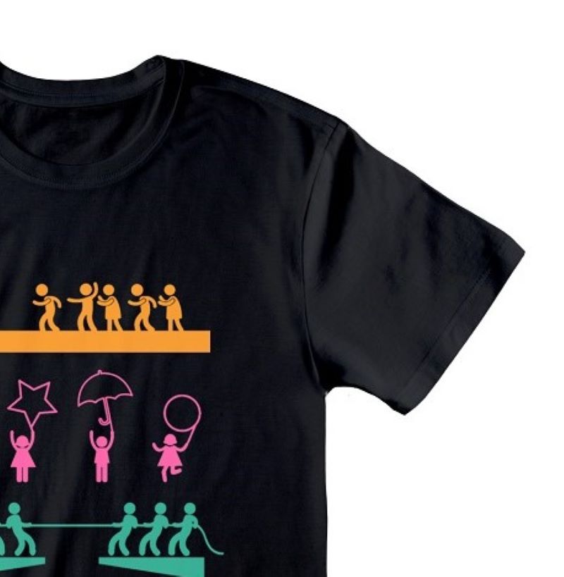 Унисекс черна тениска с къс ръкав. Разноцветни графики на лицевата страна на дрехата с четири от най-драматичните и въздействащи игри, както и логото на сериала.