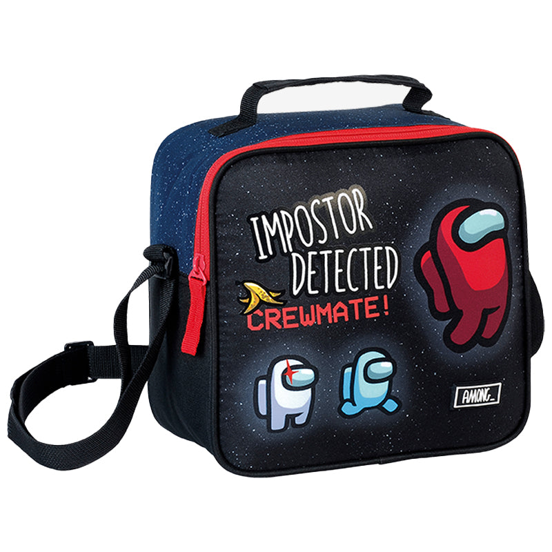 Термо чанта Among Us Impostor Detected за храна за училище с едно отделение, дръжки и презрамка.
