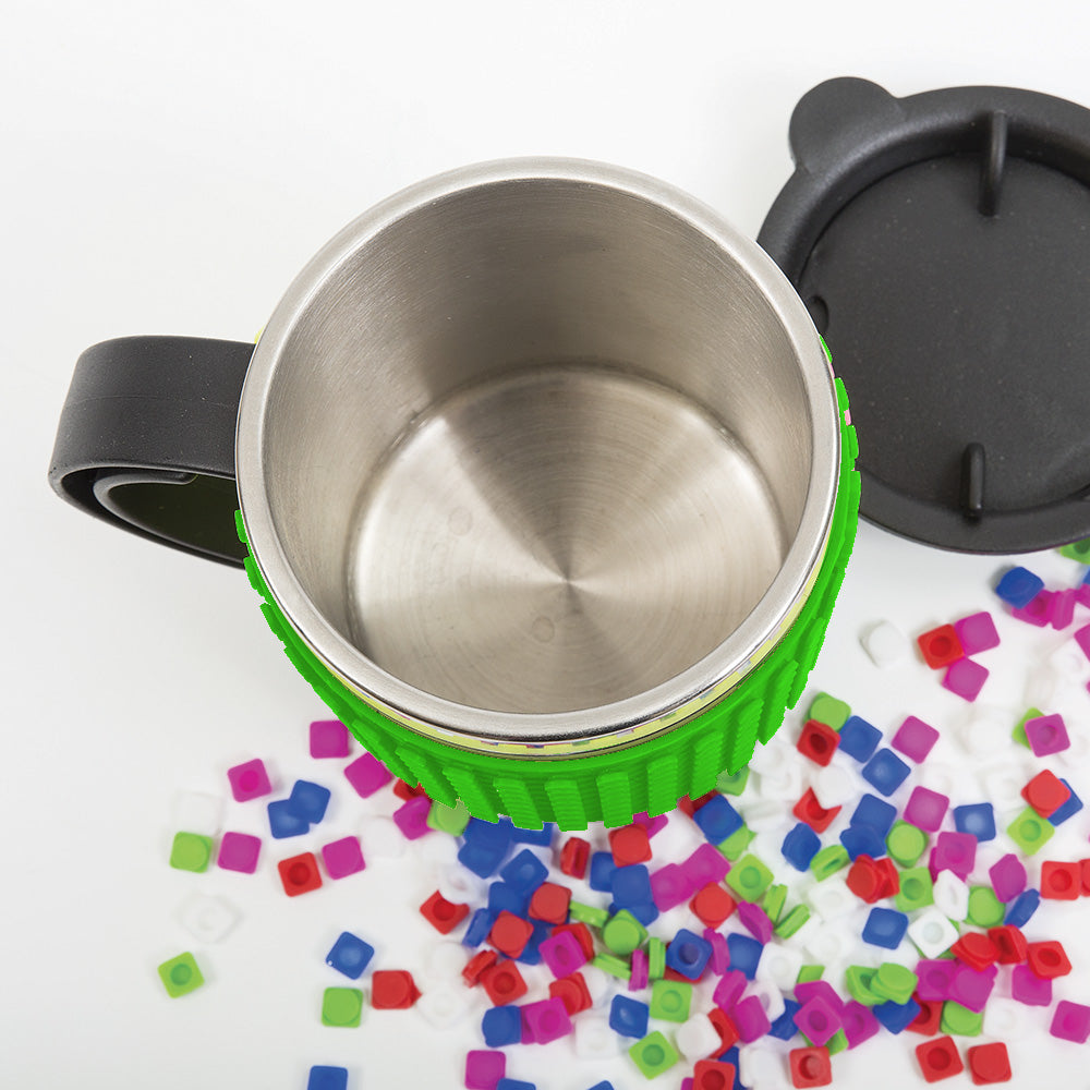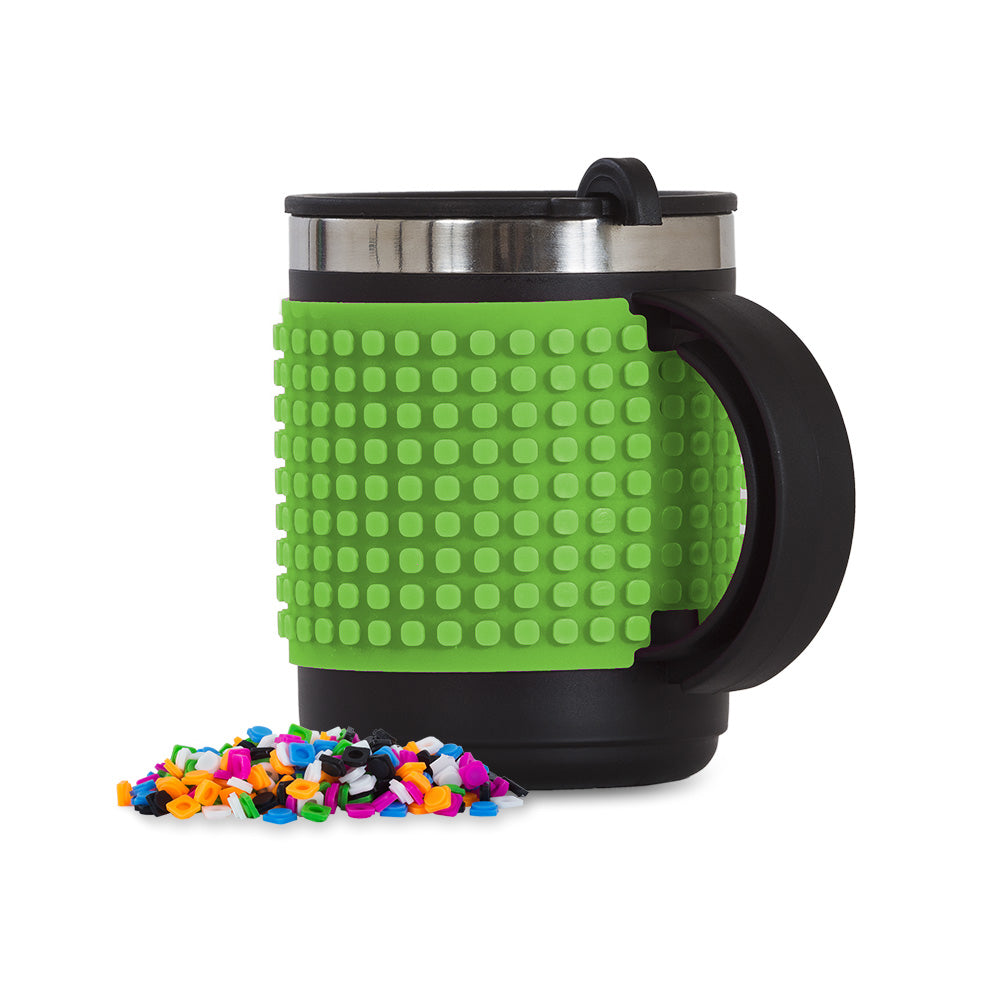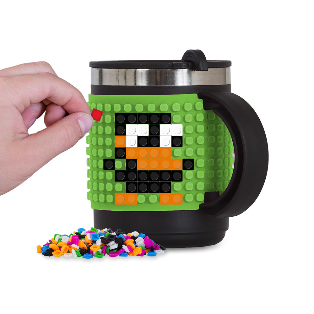 Качествената термо чаша Pixie Crew с обем 400 мл е изработена от неръждаема стомана, а практичният капак ще запази температурата на напитката за по-дълго време. Обвивката ѝ е от зелен силиконов панел, върху който децата да сглобяват стоте разноцветни пиксели. Дръжката е удобна и е подходяща за малки и големи. Чашата може да се мие в съдомиялна машина, но е препоръчително да премахнете силиконовия панел и пикселите преди миене.