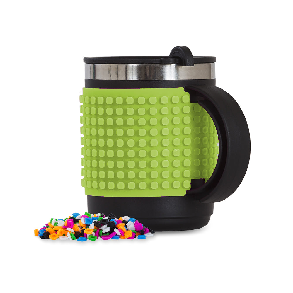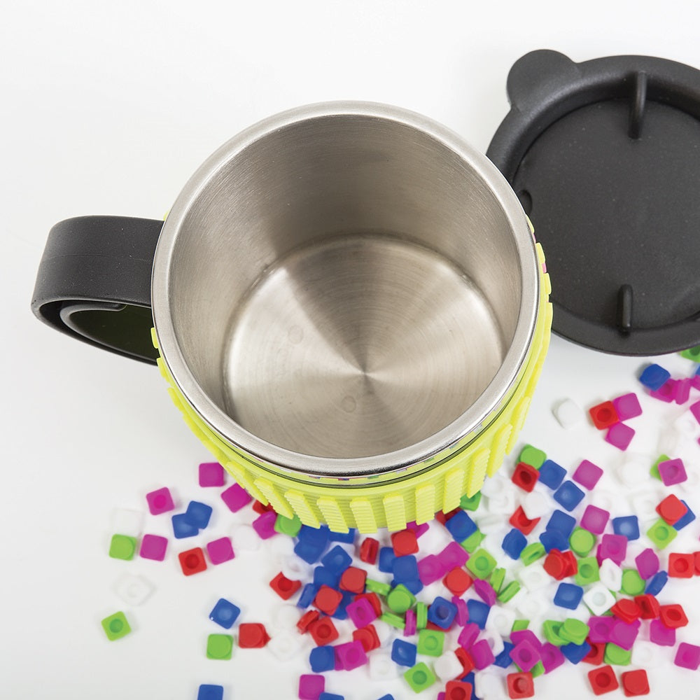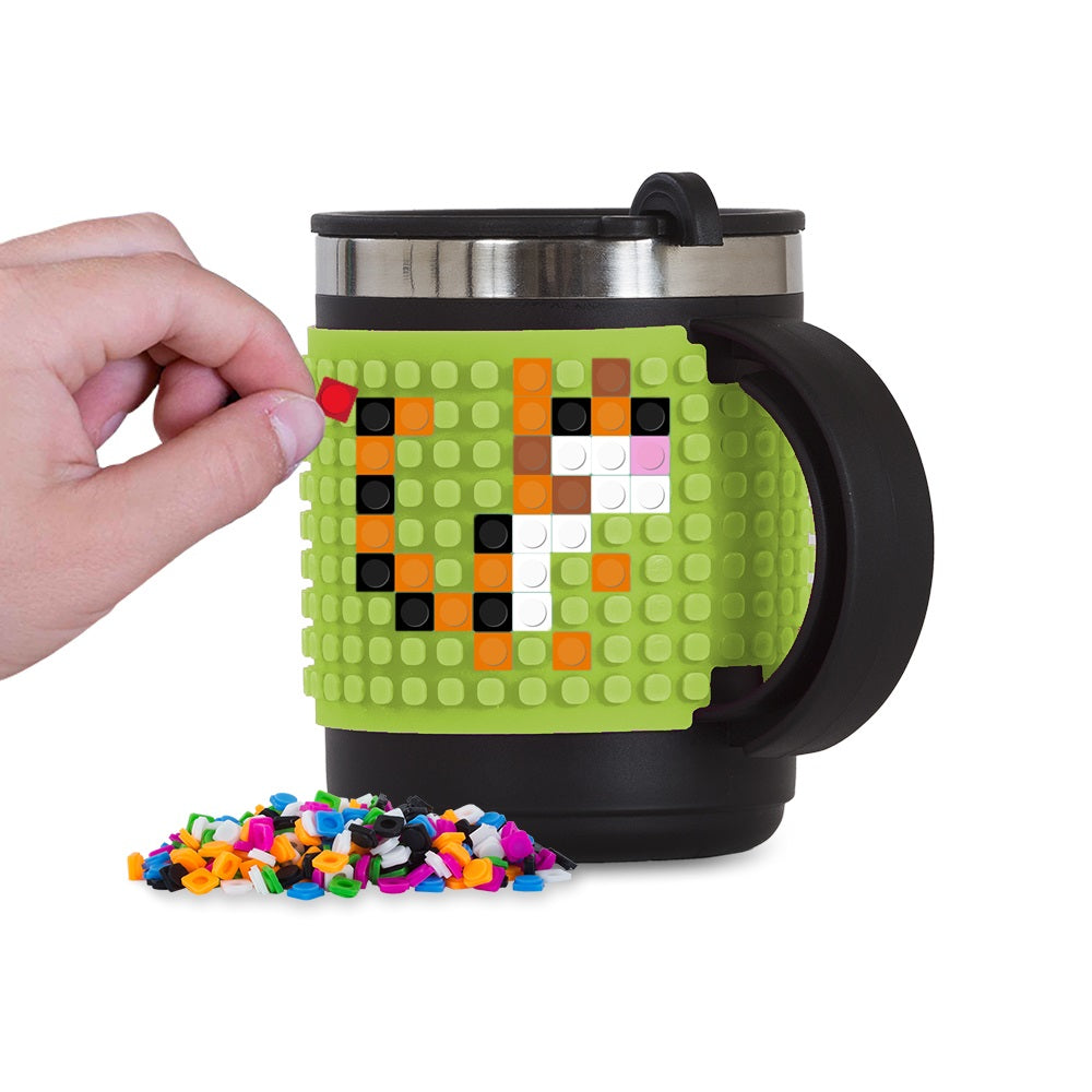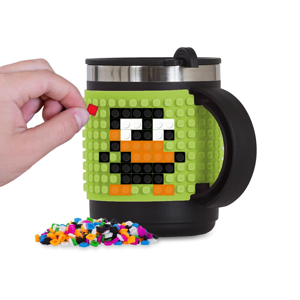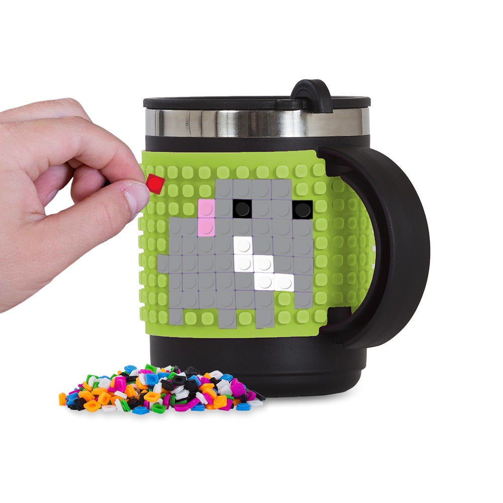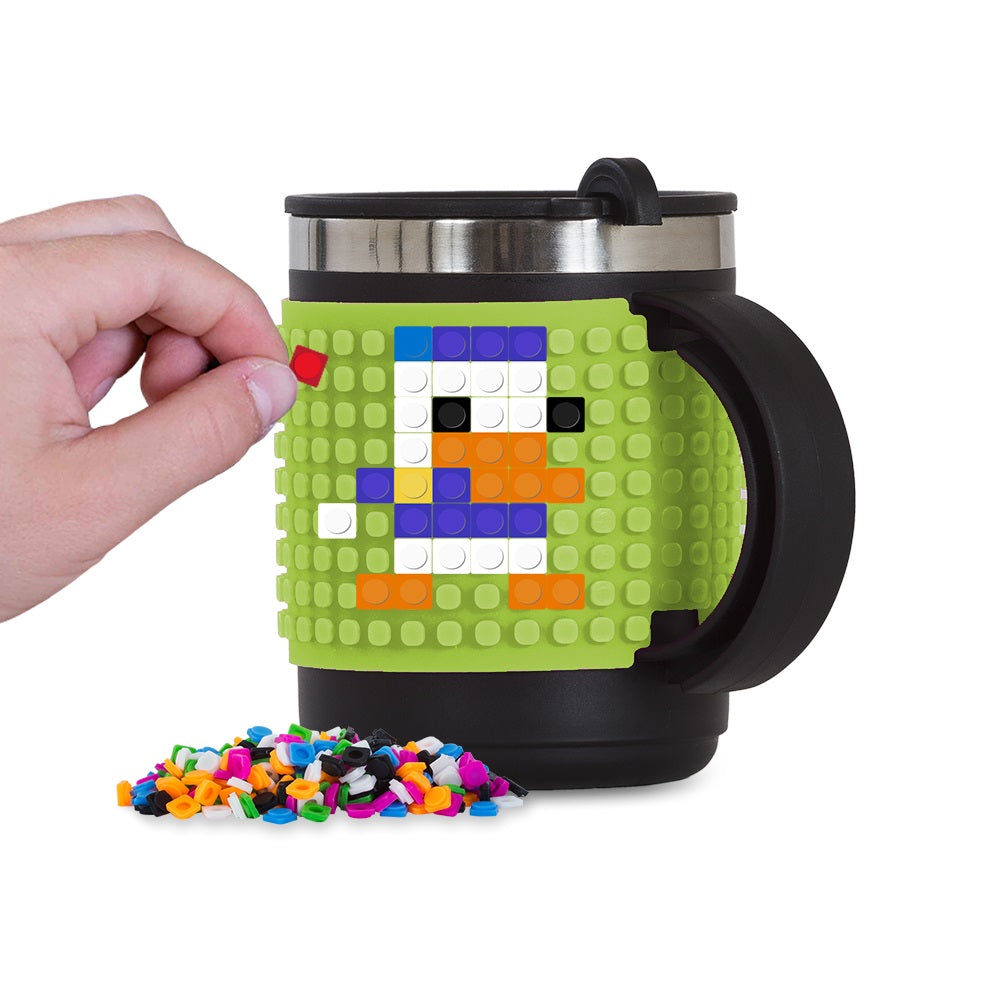 Качествена термо чаша Pixie Crew с обем 400 мл, изработена от неръждаема стомана, а практичният капак ще запази температурата на напитката за по-дълго време. Обвивката ѝ е от жълт силиконов панел, върху който децата да сглобяват стоте разноцветни пиксели. Дръжката е удобна и е подходяща за малки и големи. Чашата може да се мие в съдомиялна машина, но е препоръчително да премахнете силиконовия панел и пикселите преди миене.