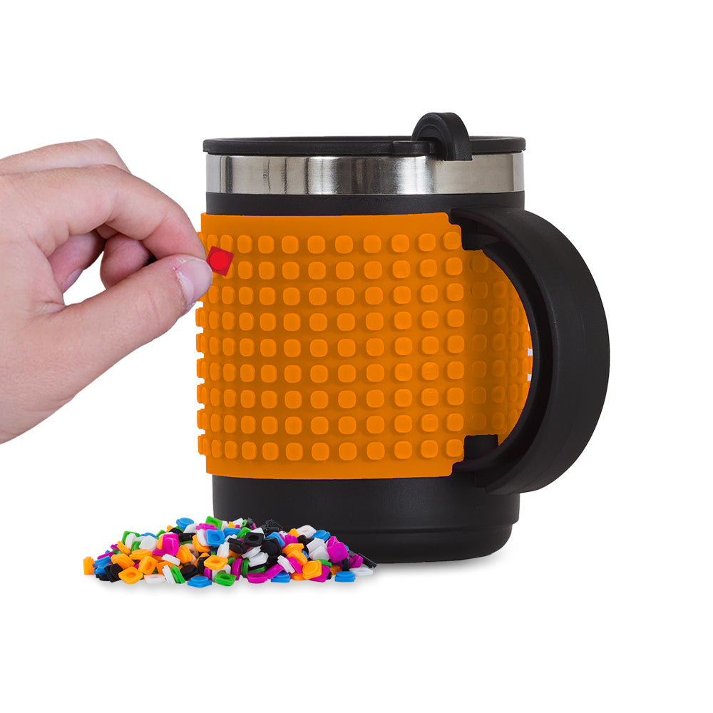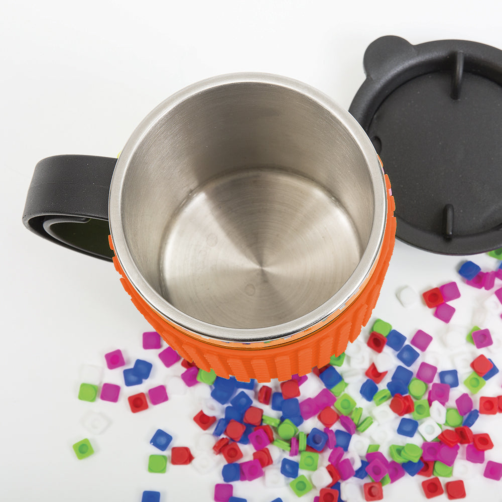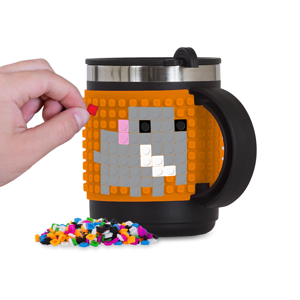 Качествена термо чаша Pixie Crew с обем 400 мл, изработена от неръждаема стомана, а практичният капак ще запази температурата на напитката за по-дълго време. Обвивката ѝ е от светещ в тъмното силиконов панел, върху който децата да сглобяват стоте разноцветни пиксели. Дръжката е удобна и е подходяща за малки и големи. Чашата може да се мие в съдомиялна машина, но е препоръчително да премахнете силиконовия панел и пикселите преди миене. Вместимост: 400 мл