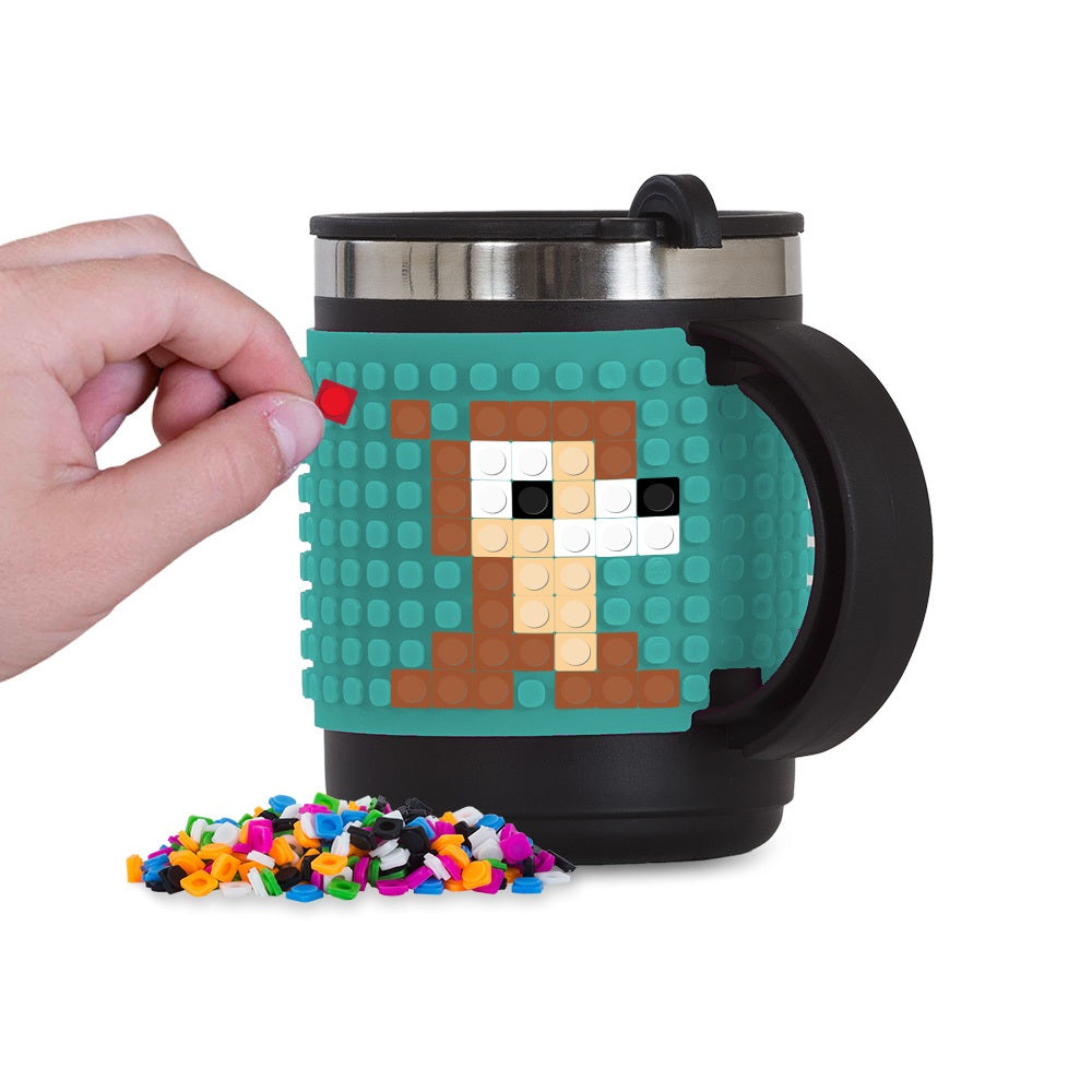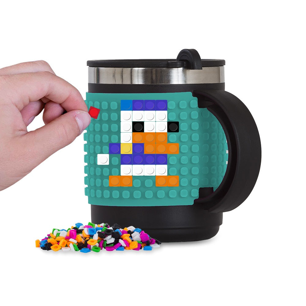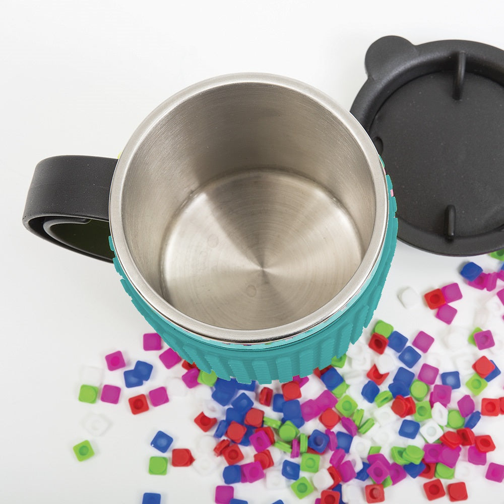 Качествена термо чаша Pixie Crew с обем 400 мл, изработена от неръждаема стомана, а практичният капак ще запази температурата на напитката за по-дълго време. Обвивката ѝ е от тюркоазен силиконов панел, върху който децата да сглобяват стоте разноцветни пиксели. Дръжката е удобна и е подходяща за малки и големи. Чашата може да се мие в съдомиялна машина, но е препоръчително да премахнете силиконовия панел и пикселите преди миене.