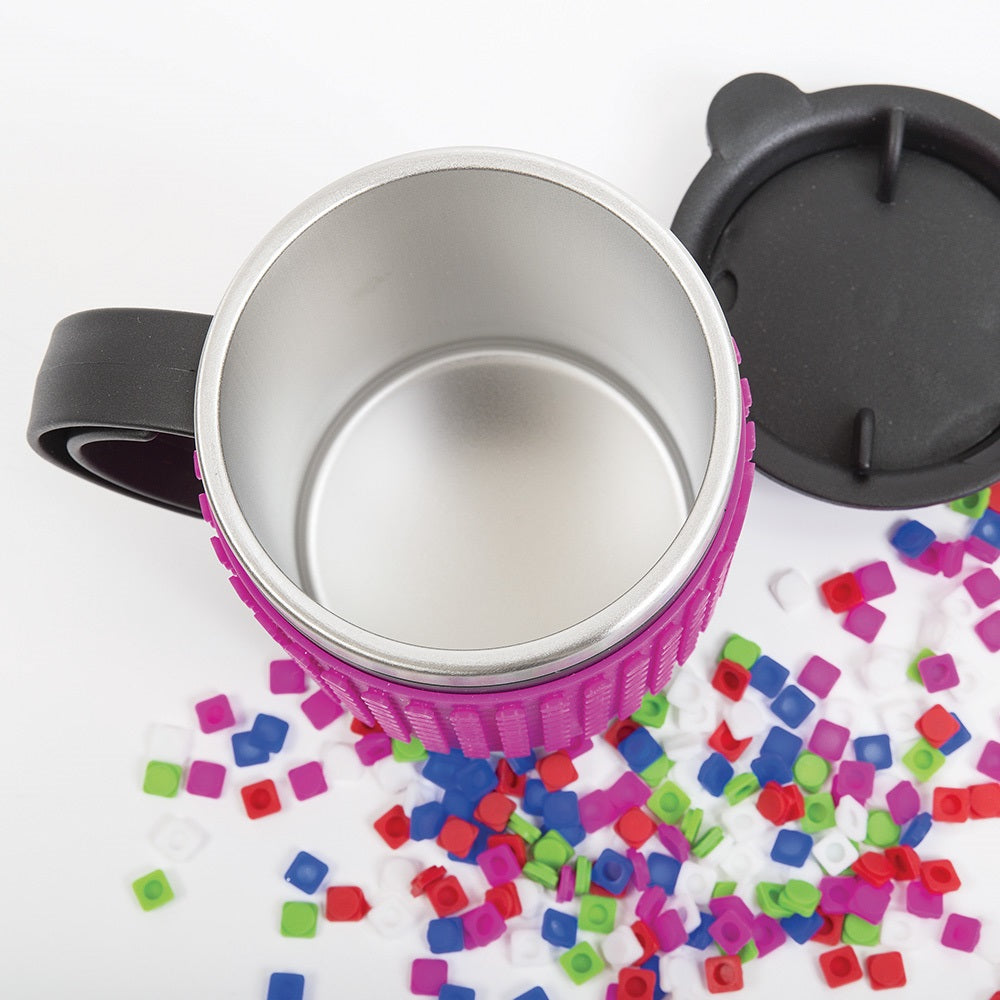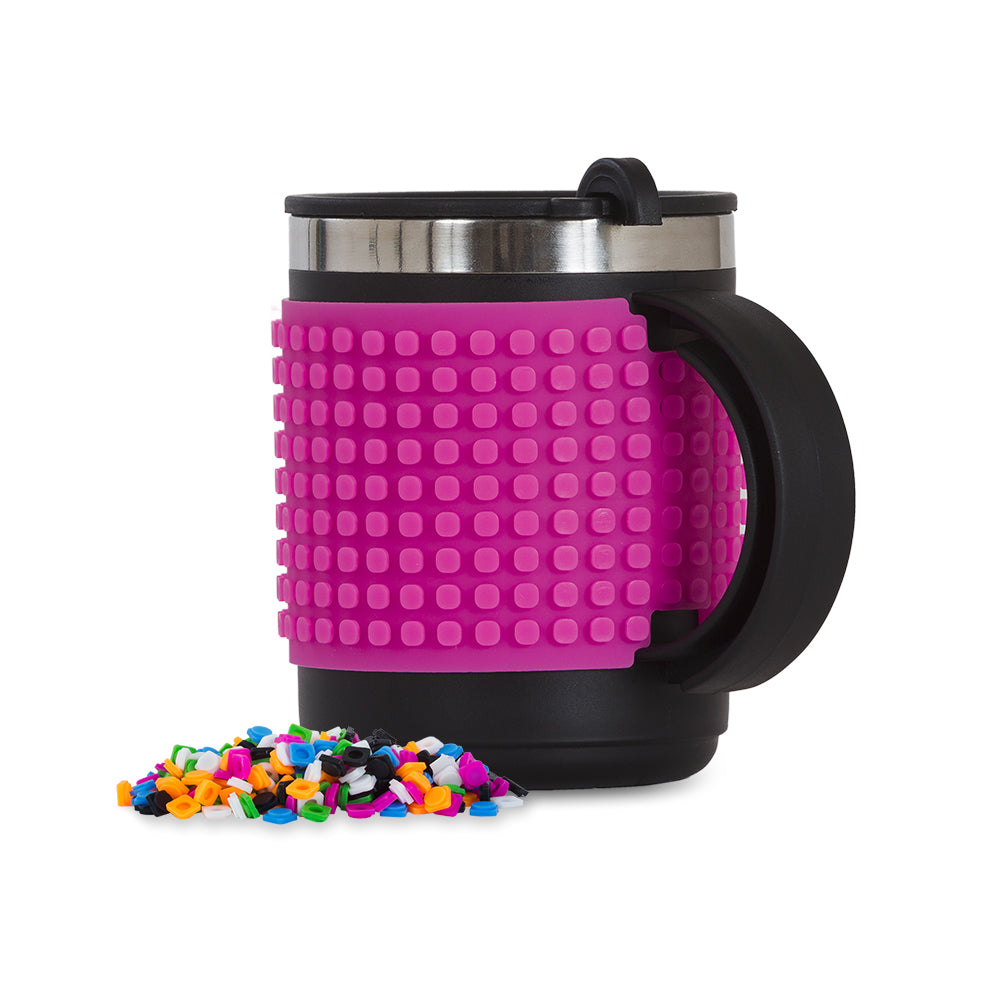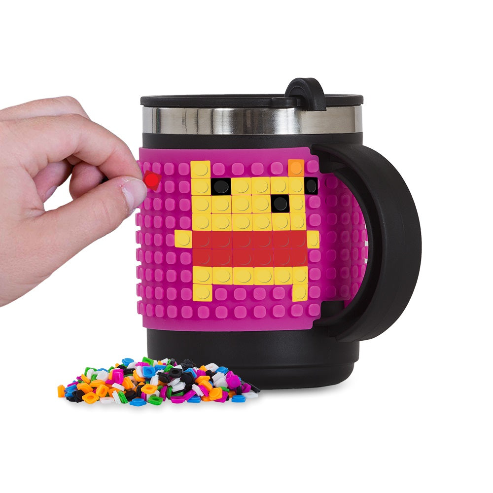 Качествена термо чаша Pixie Crew с обем 400 мл, изработена от неръждаема стомана, а практичният капак ще запази температурата на напитката за по-дълго време. Обвивката ѝ е от цикламен силиконов панел, върху който децата да сглобяват стоте разноцветни пиксели. Дръжката е удобна и е подходяща за малки и големи. Чашата може да се мие в съдомиялна машина, но е препоръчително да премахнете силиконовия панел и пикселите преди миене.