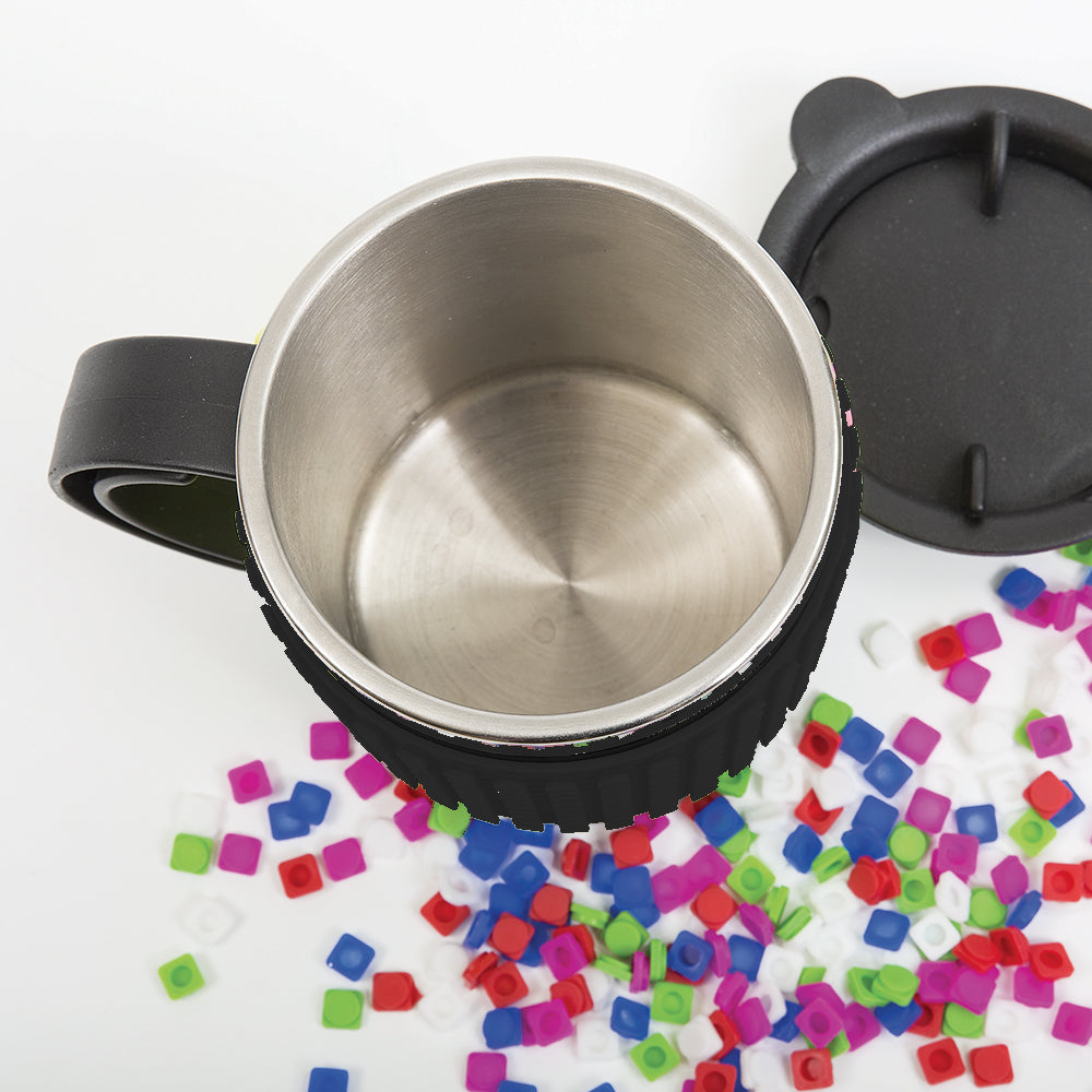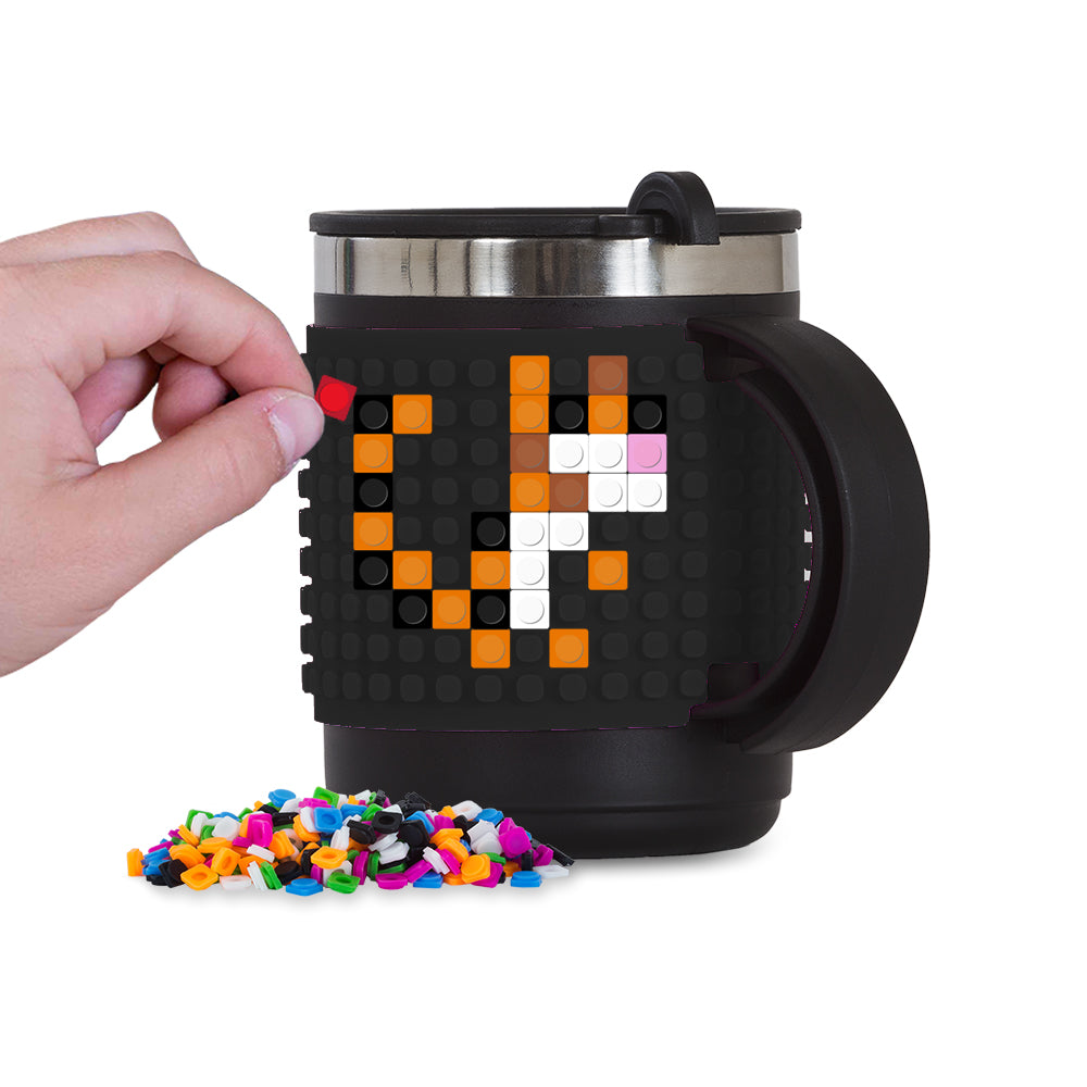Качествена термо чаша Pixie Crew с обем 400 мл, изработена от неръждаема стомана, а практичният капак ще запази температурата на напитката за по-дълго време. Обвивката ѝ е от светещ в тъмното силиконов панел, върху който децата да сглобяват стоте разноцветни пиксели. Дръжката е удобна и е подходяща за малки и големи. Чашата може да се мие в съдомиялна машина, но е препоръчително да премахнете силиконовия панел и пикселите преди миене. Вместимост: 400 мл