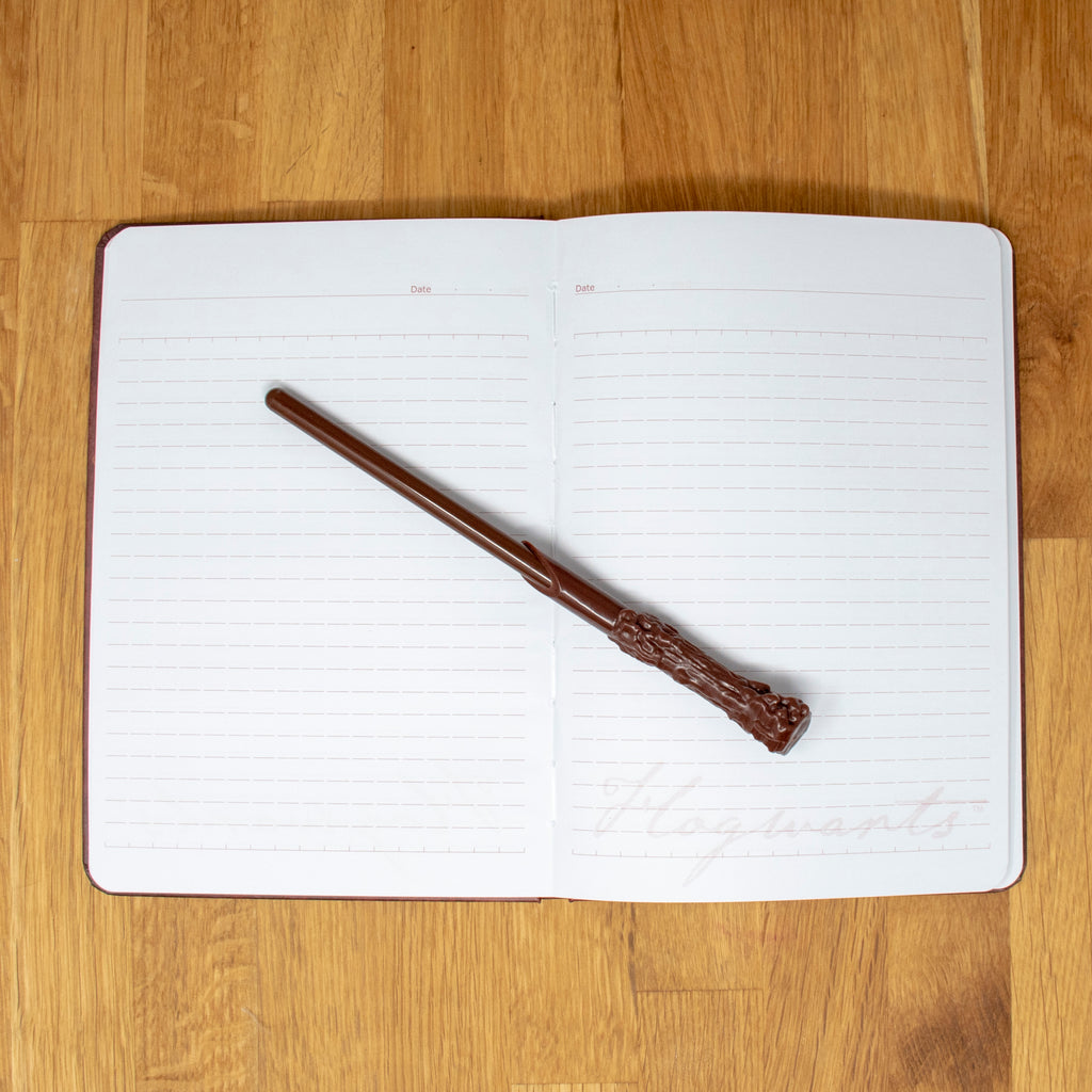 Тази красива тетрадка на Harry Potter ще събере всички важни записки от часовете по магия. Тя е с твърди корици в тъмночервен цвят, които са детайлно украсени със златни елементи. Листовете ѝ са 80, бели са на цвят и с широки редове.