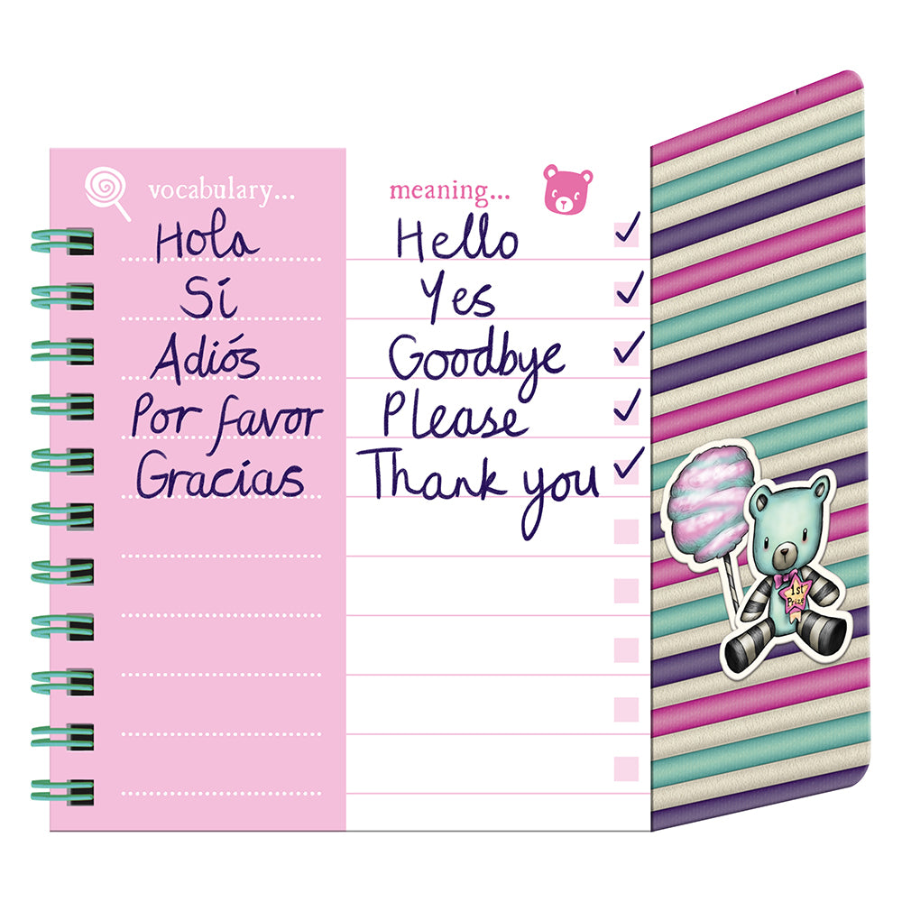 Тетрадка - речник с 2 полета е подходяща за часовете по чуждоезиково обучение. Обвързана е с метални рингове.