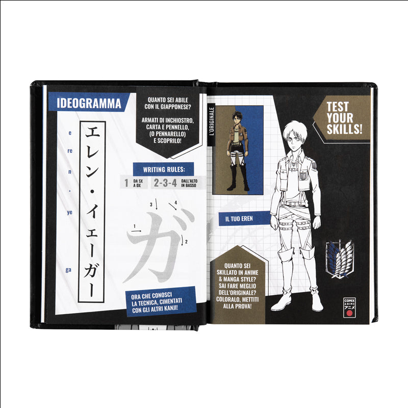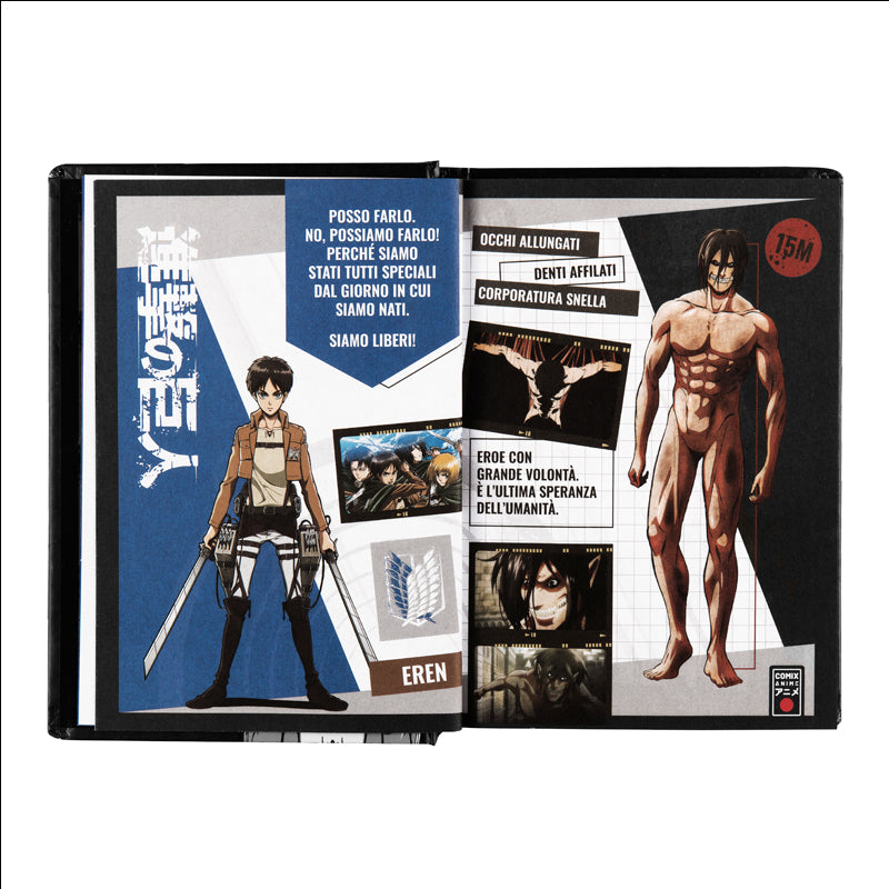 Тефтер-планер само за истинските фенове на Attack on Titan. Впуснете се в куп приключения заедно с Ерен Йегер и изчистете Земята от огромните титани. Между двете дебели корици разполагате с цели 582 страници, в които да записвате всяка своя цел и постижение, а между тях ще откриете и множество стикери с герои от анимето.