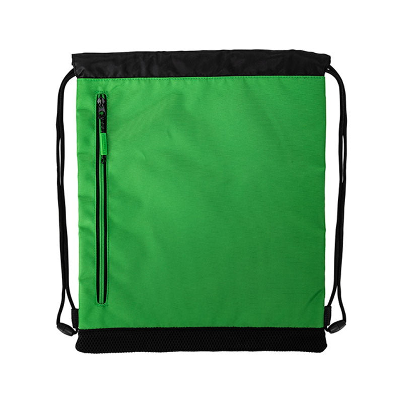Носи се на гърба посредством връзки, служещи и за презрамки.Голям джоб на задната страна със зелен цип и гумен брандиран накрайник.