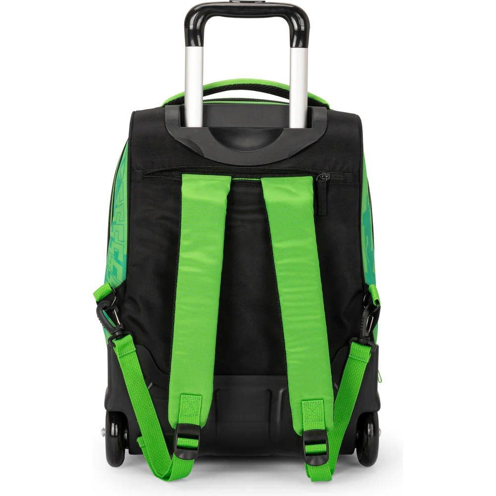 Има възможност за дърпане и бутане, благодарение на двойните гумени колела. Това е голямо удобство както за децата, така и за родителите, при проблемните с тежките раници на съвременните ученици.