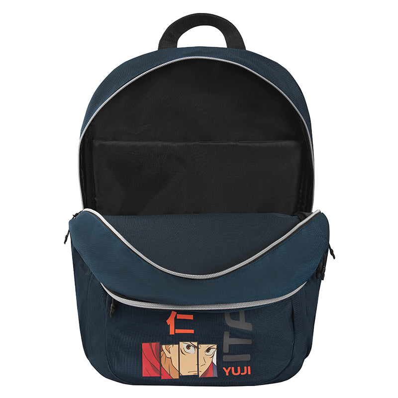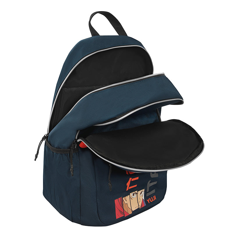 Красив дизайн с принт на Yuji и на надпис Itadori върху предния панел на раницата.