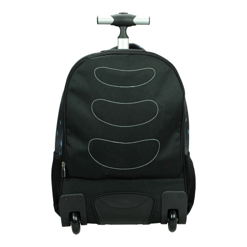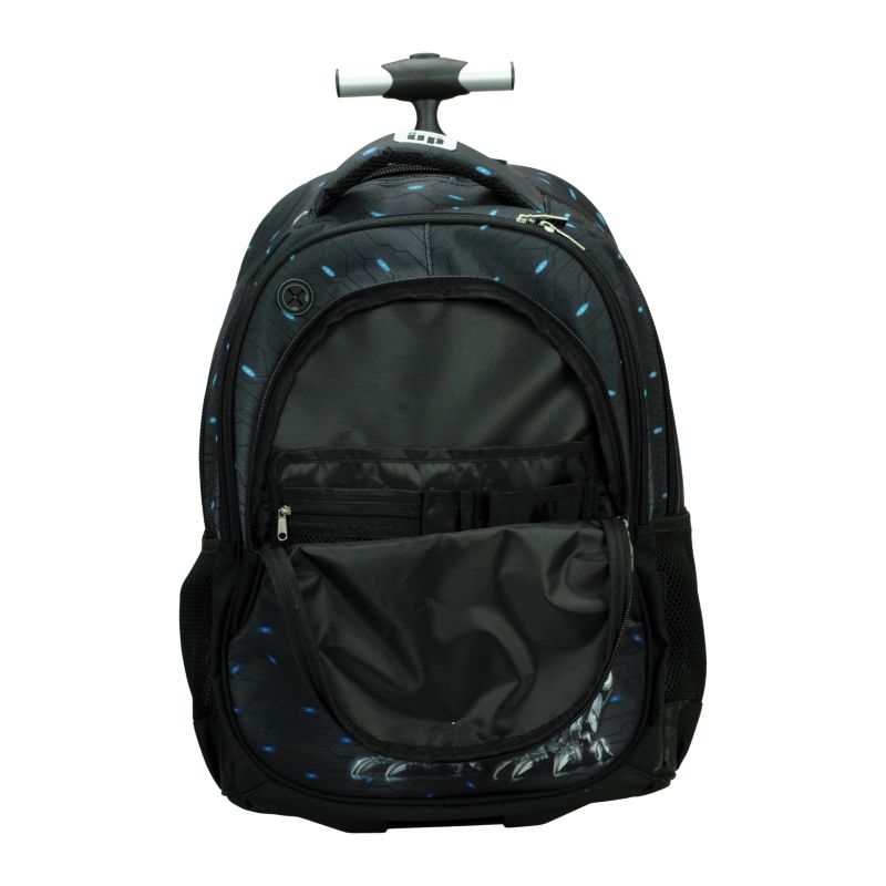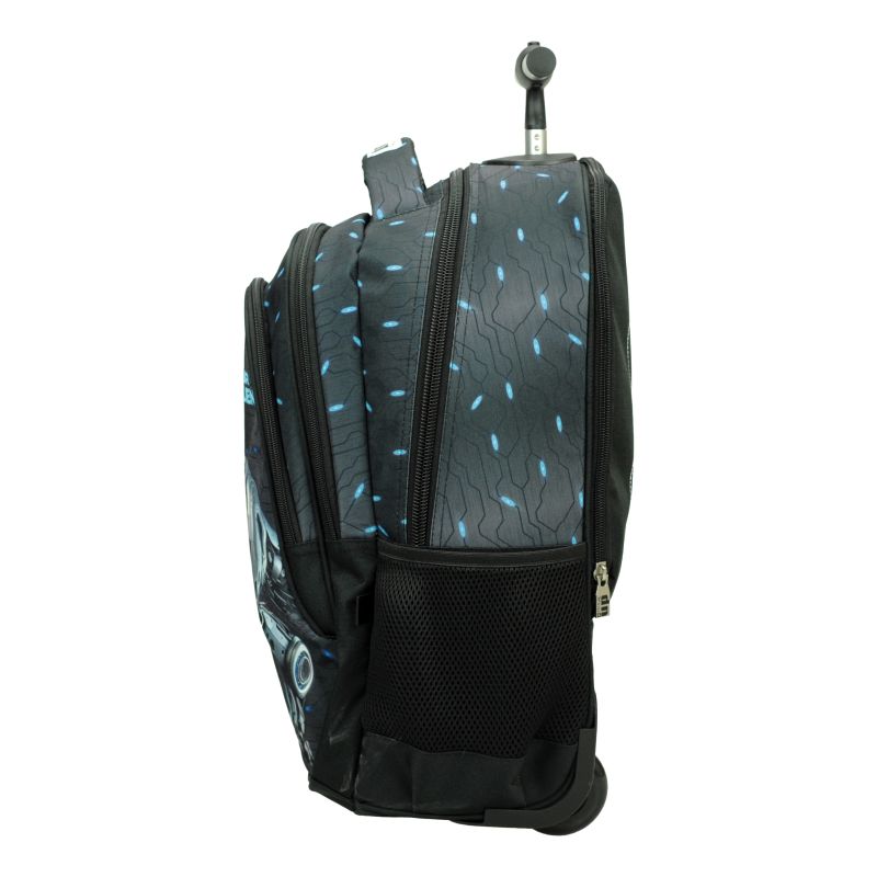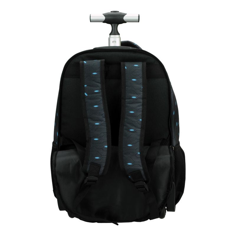 Подсилената конструкция защитава учебните материали, а вградените колелца и телескопичната дръжка улесняват пренасянето и облекчават гърба на детето.