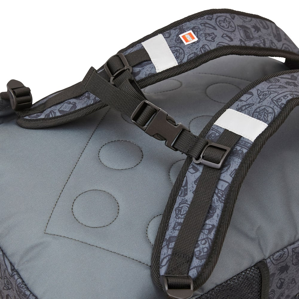 Хастар, брандиран с LEGO тухлички. Етикет за надписаване на името на детето. Релефен гръб, под формата на тухличка.  Принт на нинджата Lloyd предния панел. Регулируеми удобни презрамки с катарами за хоризонтално закопчаване пред гърдите.