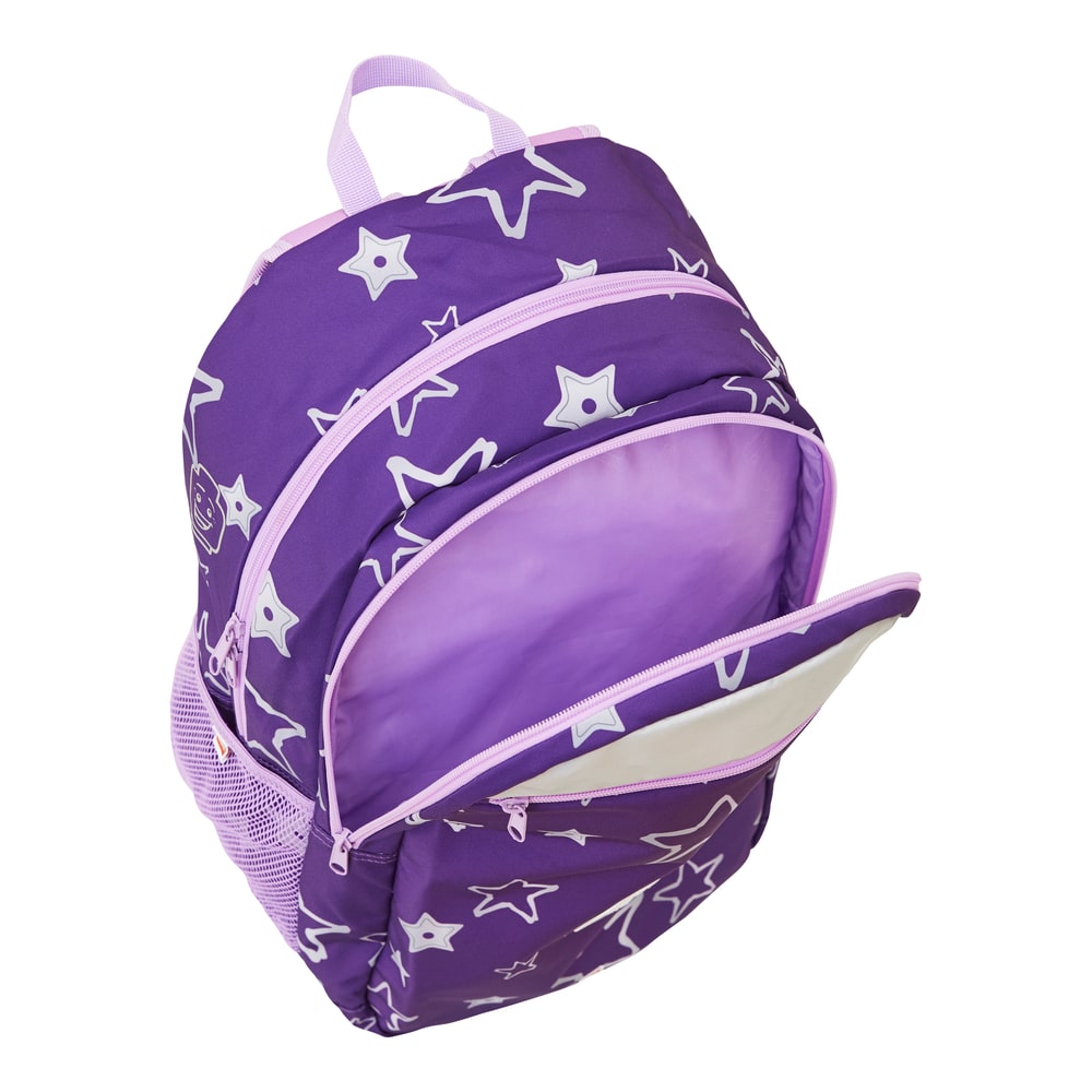 С едно голямо отделение, в което може да съберете всичко необходимо за училище, с удобните регулируеми презрамки, един допълнителен страничен джоб, два предни джоба за допълнителни пособия и лични вещи тази раница ще се превърне в едно от приятните усещания, с които децата свързват ходенето на училище. Допълнително устойчивата на мръсотия и водоотблъскваща материя, здравите ципове и ниското тегло правят раницата верен другар на ученика.