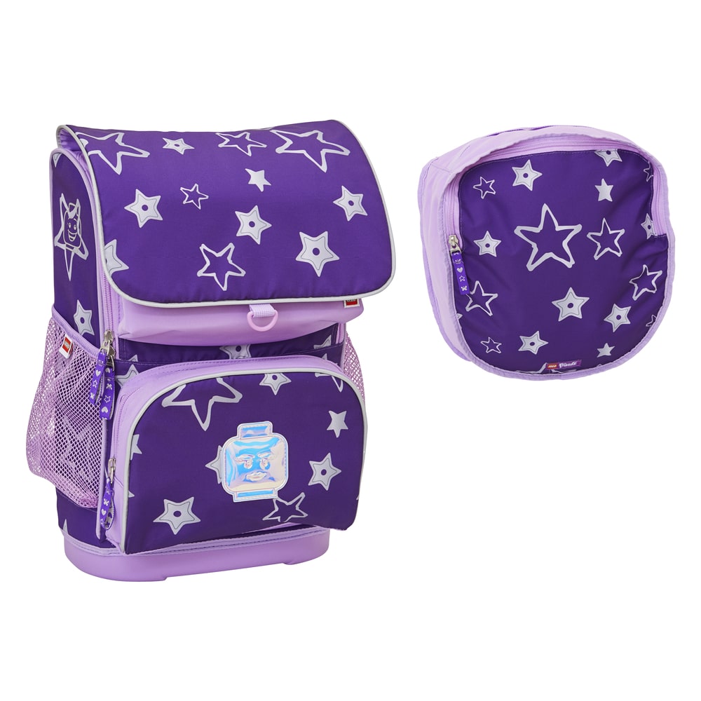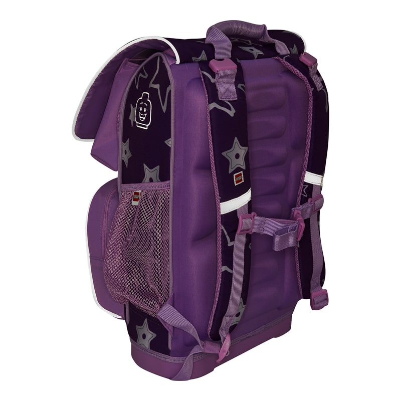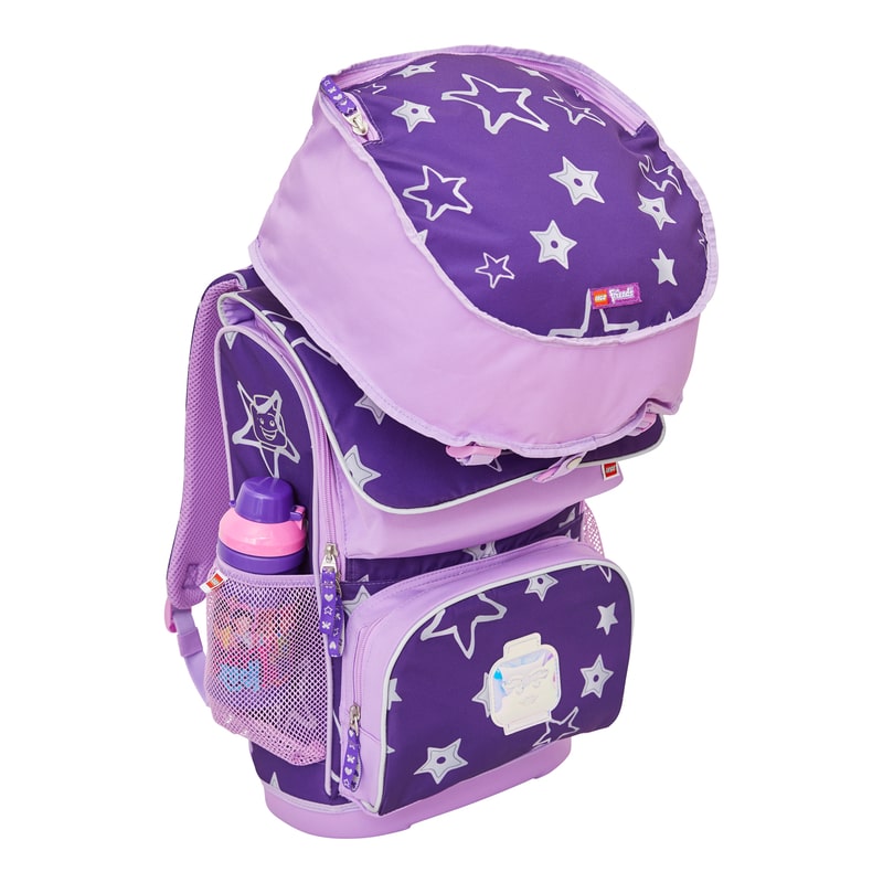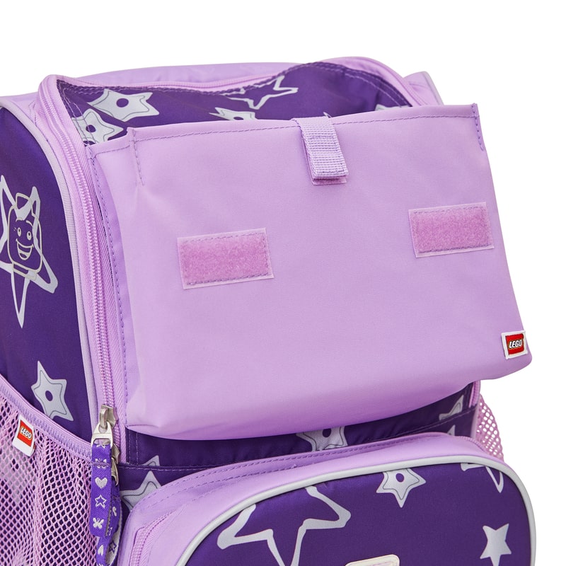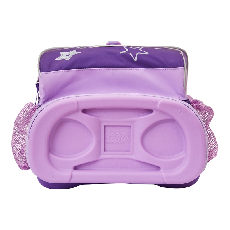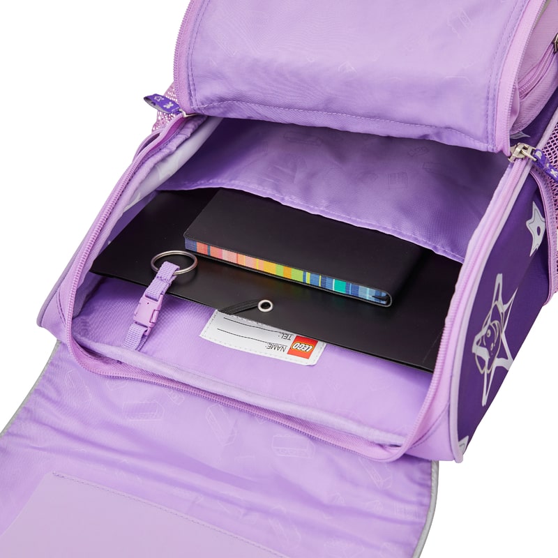 Лека раница с прикрепяща се към нея спортна чанта за физическо и изолиран преден джоб, който поддържа храната свежа през деня. Тя разполага с отделение за удобно съхранение на несесер отпред под капака и два мрежести странични джоба за бутилка вода и малки вещи. Вътре - ученическа програма, етикет за име на детето, едно голямо отделение с вътрешен разделител за съхранение на тежките учебници най-близо до гърба. Малък джоб за ученически бележник. Вграден ключодържател (само ринг без LEGO фигурка) на който може да се "кликва" също и LEGO портмоне.