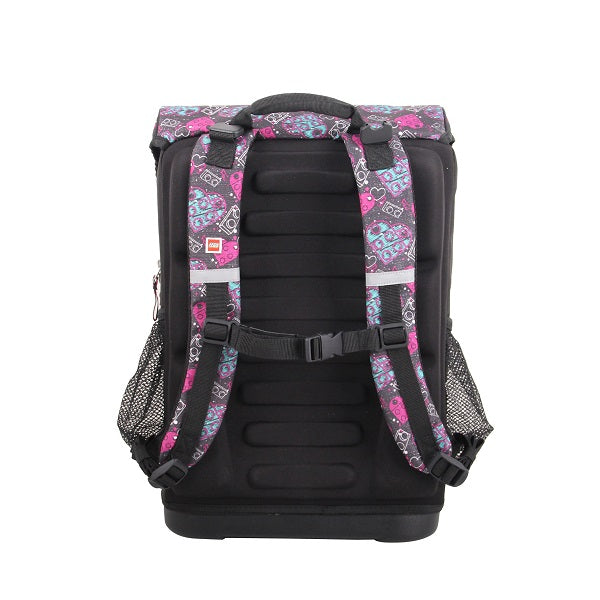 Принтовете на приятелките от LEGO Friends вселената са запленяващи и със сигурност ще очароват бъдещите собственици на раницaта. Но вас тя ще ви привлече с елегантните си светлоотразителни кантове и ивици,  чиято основна цел е да направят видимо вашето дете, дори и в тъмната част на денонощието, когато се налага да бъде в близост до автомобили.