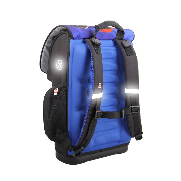 С голямо отделение и вътрешна преграда, може да съберете всичко необходимо за училище. С удобните регулируеми презрамки, допълнителни странични мрежести джобове за бутилки с вода, преден горен джоб за училищен несесер, тази раница ще се превърне в едно от приятните усещания с които децата свързват ходенето на училище. Вътрешен джоб с цип за ученически бележник. Прозрачен джоб със срочната програма, пришит в капака. Вграден ключодържател (само ринг, без LEGO фигурка). Допълнително устойчивата на мръсотия и водоотблъскваща материя, здравите ципове, и твърдото, стабилно дъно правят раницата верен другар на ученика години наред.