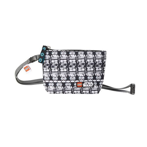 + Портмоне с LEGO Star Wars Stormtrooper - има едно отделение, което се затваря с цип. В него детето може да съхранява банкноти и монети.  Портмонето има допълнителна дълга връзка за закачане с дължина 2х40 см. Размери: дължина 13 см, ширина -10 см. и дълбочина 2 см.