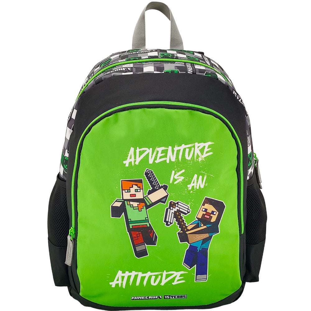 Ученическа раница Minecraft Attitude - - Най-добрият спътник за забавление. Пригответе се да носите вещите си със стил, с щипка любов към любимата ви игра. ✔ Ексклузивен 3D преден панел с уникален принт, пълен с референции към играта, което я прави задължителна за всеки фен на Minecraft . ✔ Широк преден джоб осигурява лесен достъп до вещите ви и ги поддържа организирани. ✔ Просторно централно отделение,достатъчно за всичко необходимо, независимо дали е за училище или ежедневна употреба. ✔ Мрежести странични джобове за съхранение на бутилки с вода или други малки предмети, които трябва да имате под ръка. ✔ Подсилени ципове – За по-голяма сигурност и издръжливост. ✔ Регулируеми подплатени презрамки – Гарантират максимален комфорт през целия ден. ✔ Къса дръжка – За удобно носене в ръка. ✔ Максимална издръжливост и лесно почистване – Проектирана да издържи и да изглежда добре дълго време. Независимо дали сте ученик, или просто фен на играта, тази раница е проектирана да бъде както функционална, така и стилна.
