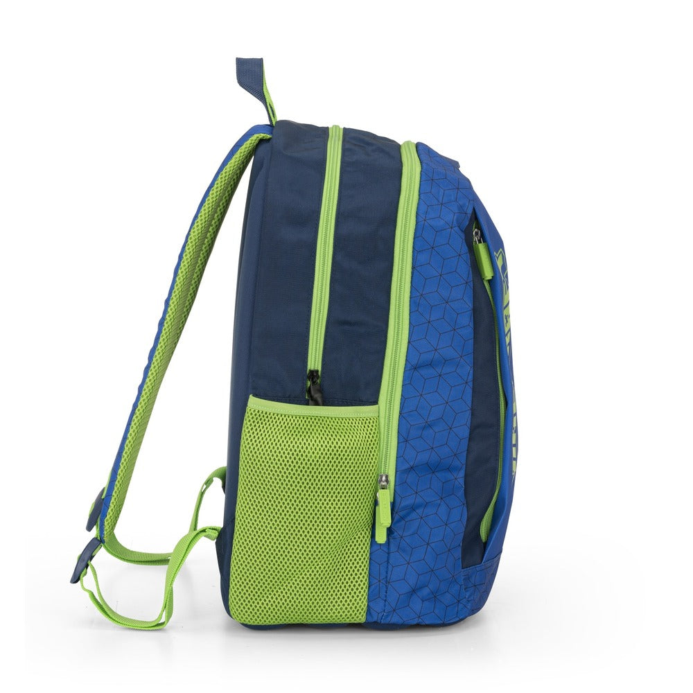 Раницата е удобна за носене, благодарение на здравите, подплатени и регулируеми презрамки. Освен това разполага с вентилиран ергономичен гръб, дръжка за хващане и два странични джоба за бутилката за вода на ученика. Раницата е изработена от полиестер.