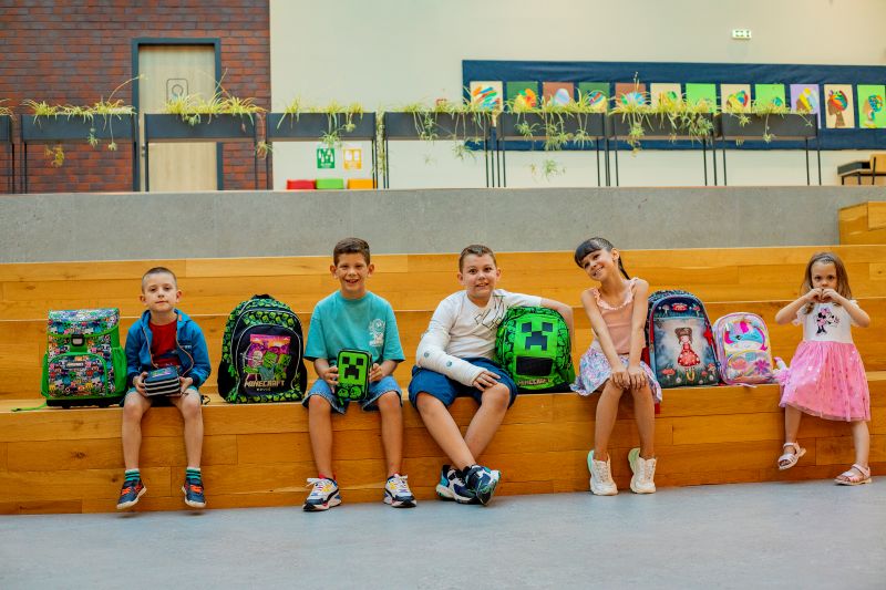 Подплатени и регулируеми презрамки. Твърд гръб и твърда основа. Два високи и широки, пристегнати с ластичен финиш, странични джоба за бутилката за вода на ученика.
