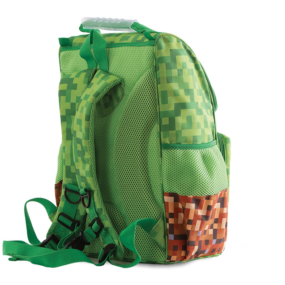 Класическа ученическа раница с едно голямо отделение. Преден джоб с вътрешно малко отделение и  два странични джоба за бутилки за вода. Странични кафяви  плътни/мрежести джобове с ластик за бутилки за вода.
