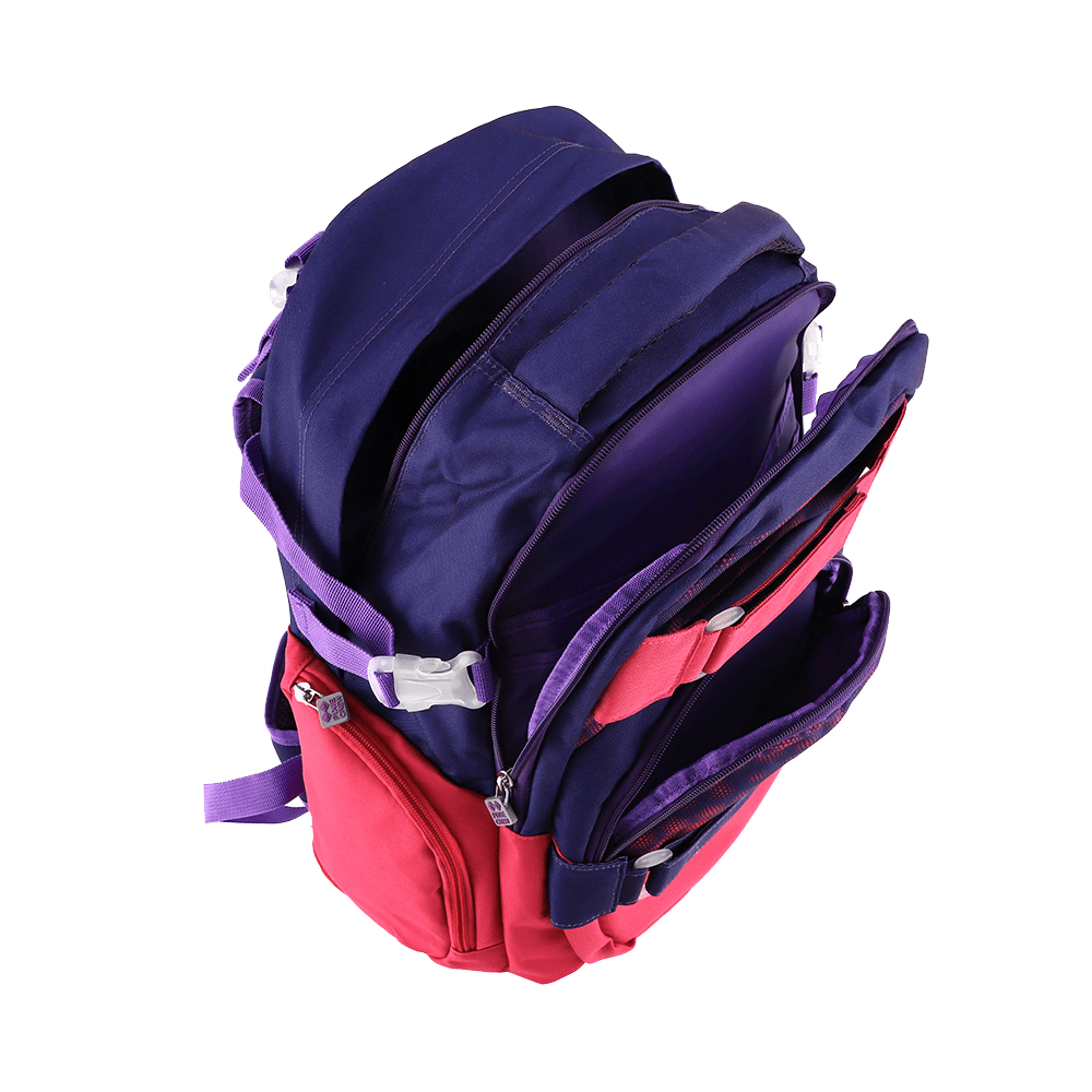 Раницата се състои от три обширни отделения, които се затварят със здрави ципове с гумени накрайници.