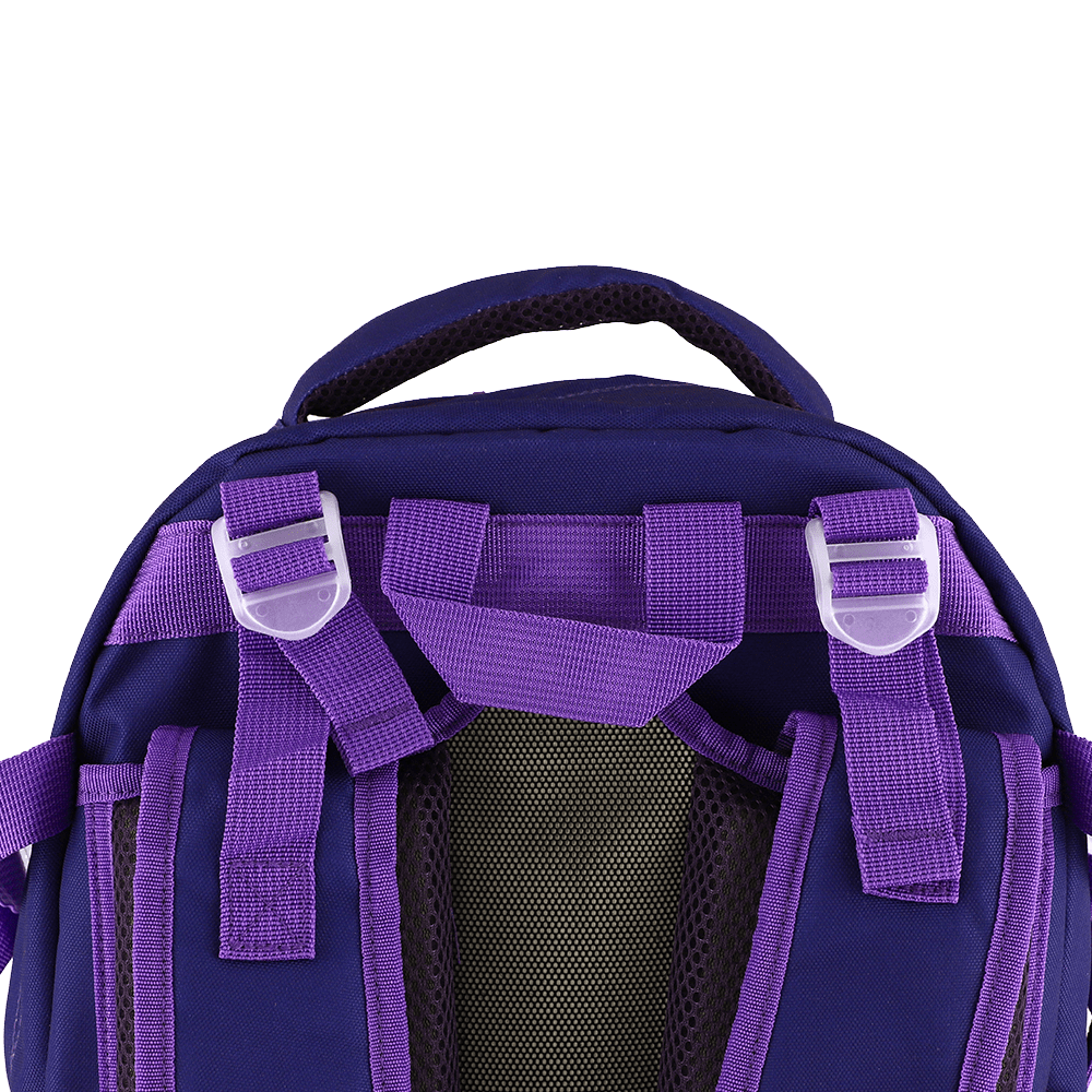 Освен това раницата разполага и с два здрави и масивни текстилни колана, които дават възможност за закрепване на яке, което не отнема от вътрешния обем, а стои свободно извън раницата. Също така раницата има и две регулируеми каишки за пристягане към гърдите и кръста. Едната е в горната част и гарантира, че презрамките няма да падат от раменете на децата, а другата е в долната част и спомага за равномерното разпределение на тежестта, като отнема напрежението от врата и кръста и спомага за запазване на правилната стойка.
