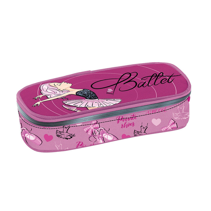 Удобен и стилен квадратен несесер Ballerina за училище. Разполага с едно основно отделение и вътрешни джобове за канцеларски материали. Затваря се с цип. Има красив дизайн, с розов фон и принт на балерина, който ще се хареса на всяко момиче.