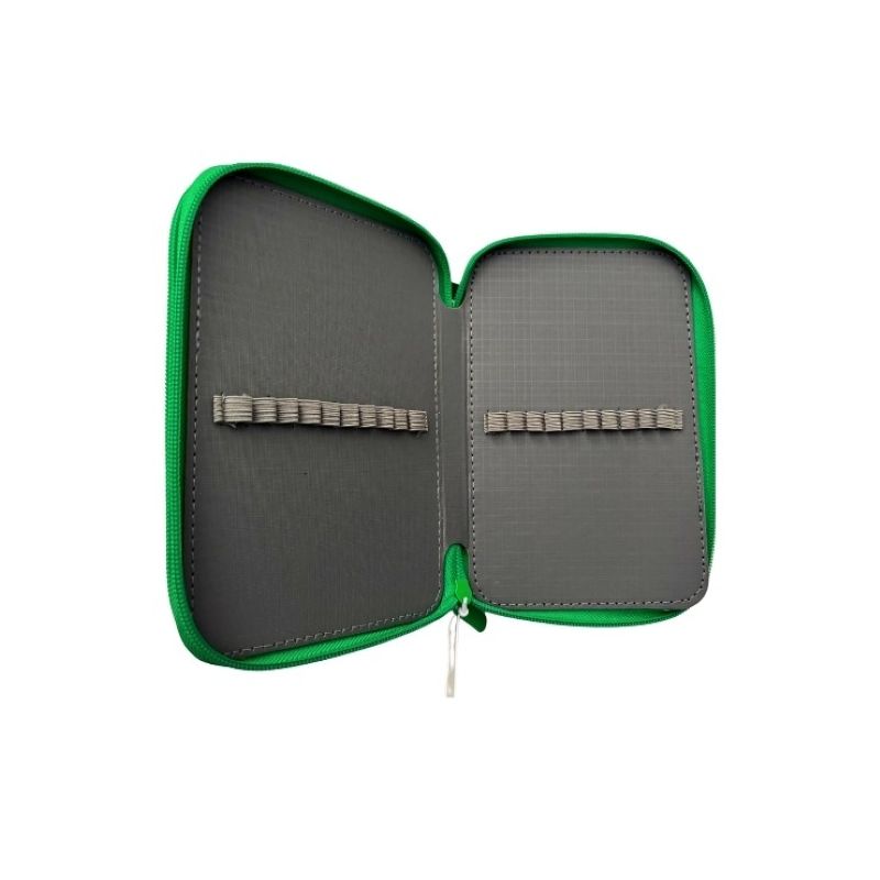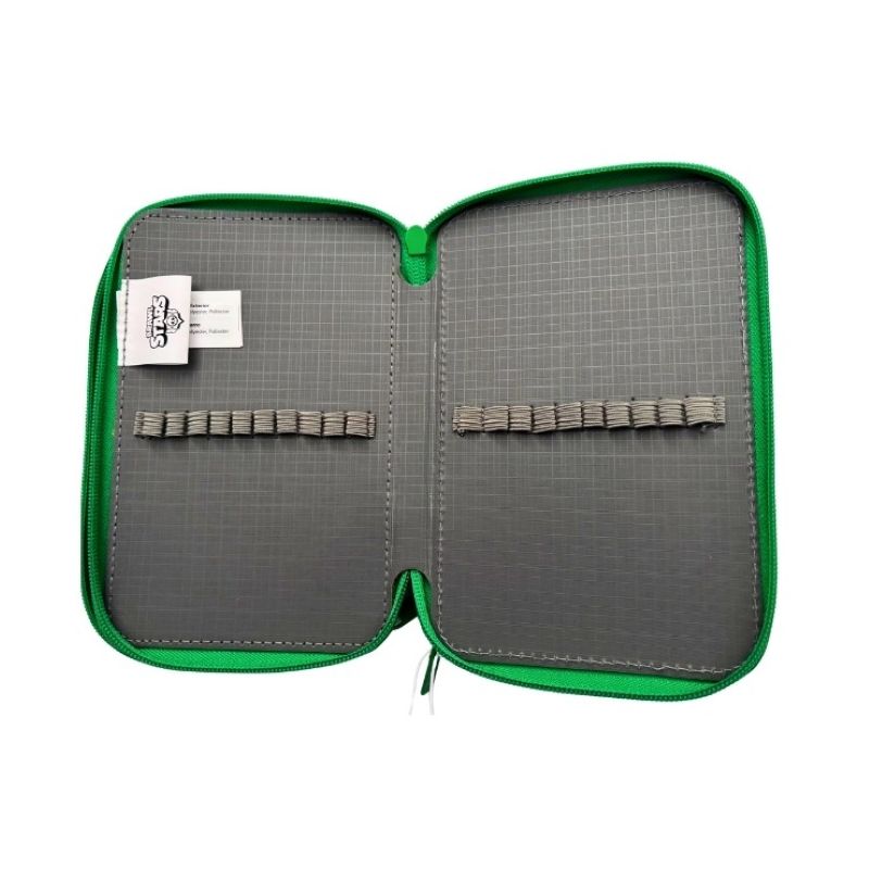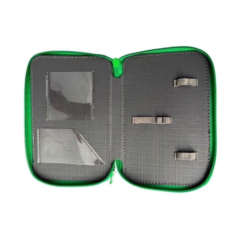 В несесерът има ластични гнезда за всички необходими училищни принадлежности.