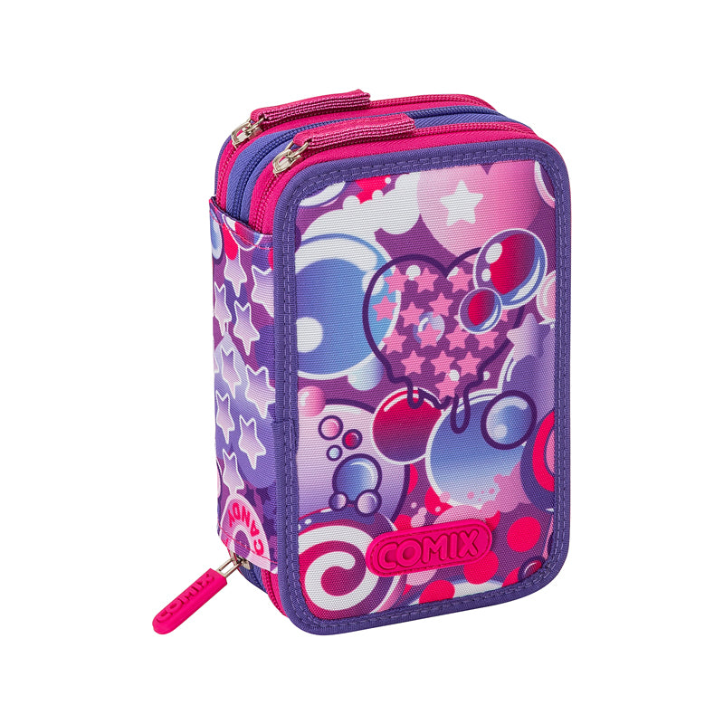 Ученически несесер Comix Bright Bubbles Girl с 3 ципа със съдържание: