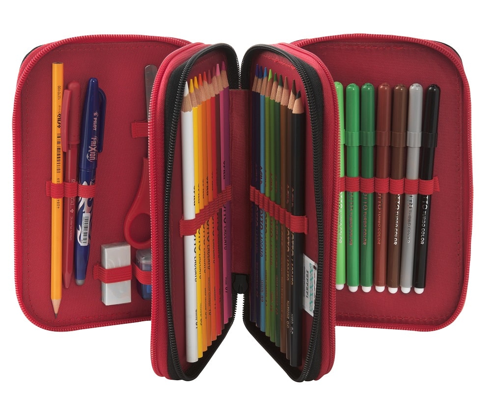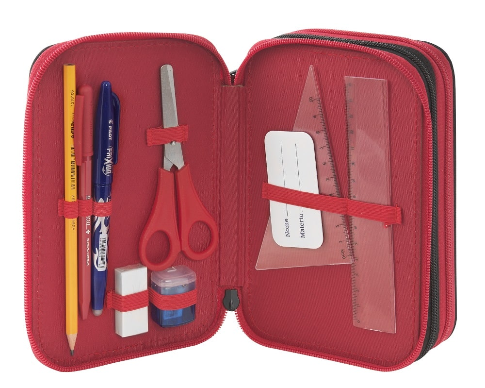 Троен несесер Ferrari, специално създаден за малките състезатели. Той е направен от надеждни материали и здрави ципове, обещавайки да е дълго време част от ученическите принадлежности на децата. Това не е всичко, към него ще намерите и най-важните за учебния ден аксесоари: