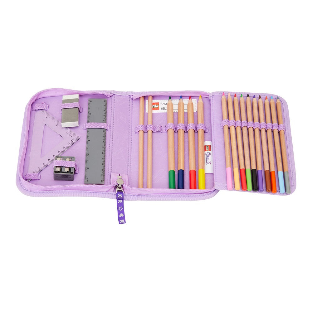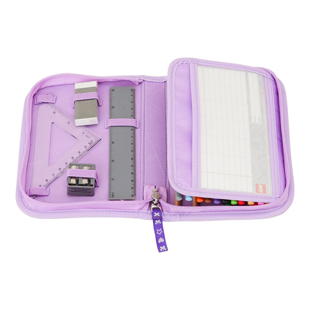 Ученически несесер, който ще е чудесно допълнение към всякa раница на LEGO. Съставен от три сегмента, обкантени с гумени ленти, които се събират в общо тяло, затворено с цип. Вътре се подреждат моливи и химикали, гумичка, острилка, триъгълник и линия. LEGO етикет за вписване името на ученика.