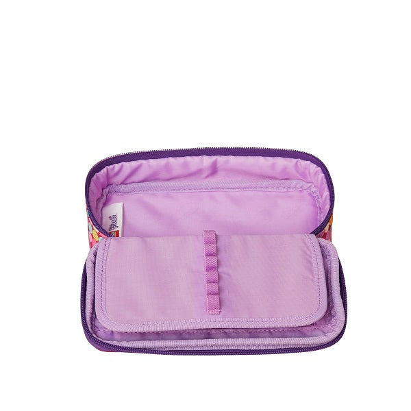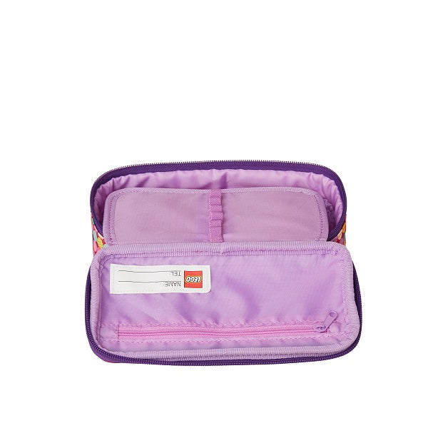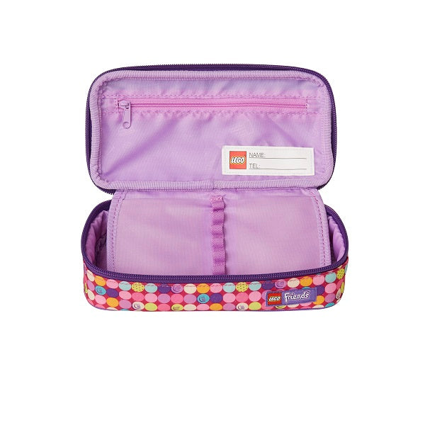 Страхотен 3D ученически несесер, допълнение към всяка раница. Обемен принт на приятелкиje на лицевата страна. Идеален за комплект с LEGO раница. Съставен от три сегмента, обкантени с гумени ленти, които се събират в общо тяло, затворено с цип. Удобно вътре се носят моливи и химикали, гумичка, острилка, триъгълник, и линия. Възможно е насипно съхранение на ученически принадлежности. Подходящо за деца, които на искат да си губят времето с подреждане.
