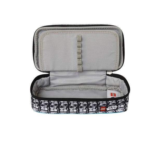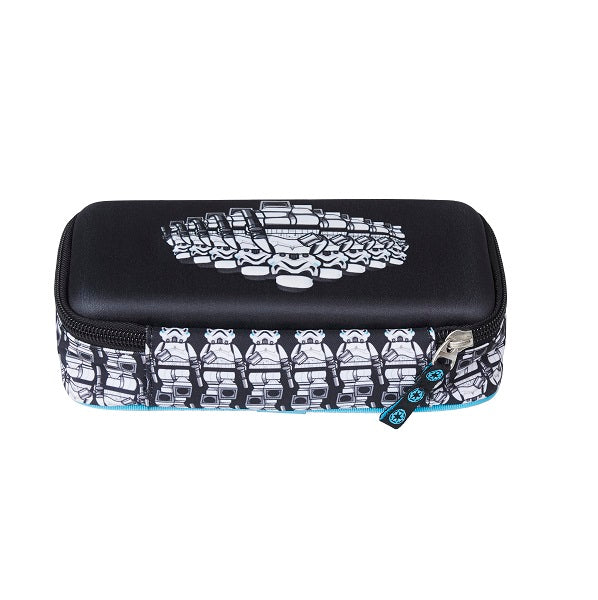 Страхотен 3D ученически несесер, допълнение към всяка раница. Обемен принт на щурмоваци на лицевата страна. Идеален за комплект с LEGO раница. Съставен от три сегмента, обкантени с гумени ленти, които се събират в общо тяло, затворено с цип. Удобно вътре се носят моливи и химикали, гумичка, острилка, триъгълник, и линия. Възможно е насипно съхранение на ученически принадлежности. Подходящо за деца, които на искат да си губят времето с подреждане.