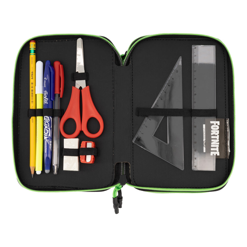 Страхотен ученически троен несесер, допълнение към раница FORTNITE. Страхотен  принт FORTNITE на страничния панел.