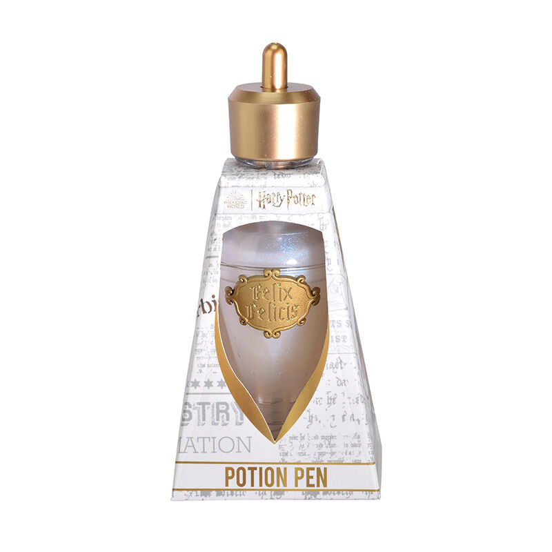 Писалка за отвари с перлена течност, златна капачка и позлатени предни детайли. Размери 3 х 3 х 12 см.