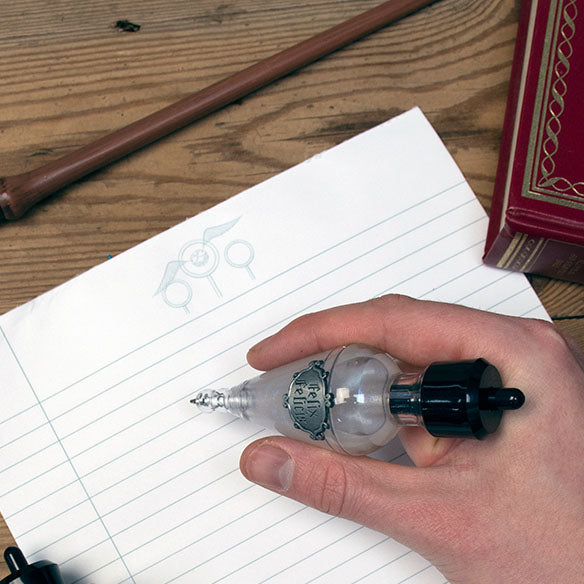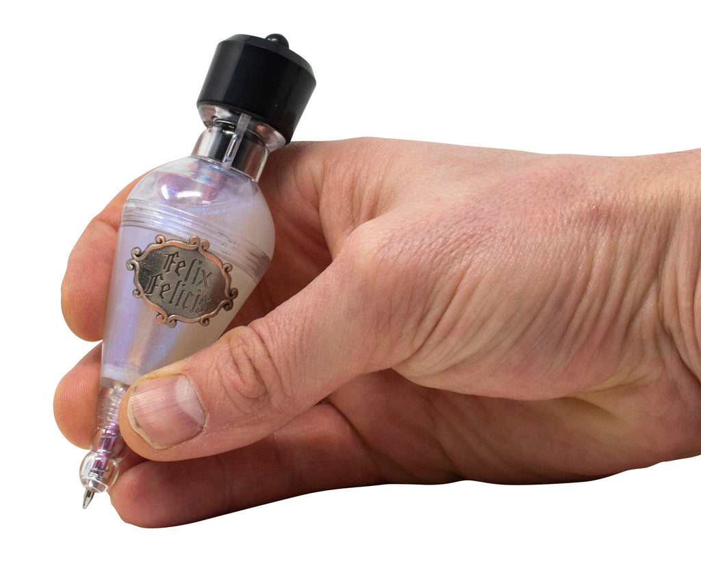 Химикалка с отвара Felix Felicis, наричана още Liquid Luck (Течен късмет), носеща късмет на човека, който я е изпил за определен период от време. Е, ние не можем да гарантираме, че това ще се случи с тази химикалка, но обещаваме, че ще служи вярно, докато записвате интересни заклинания и рецепти за отвари. Мастилото на химикалката Harry Potter е черно.