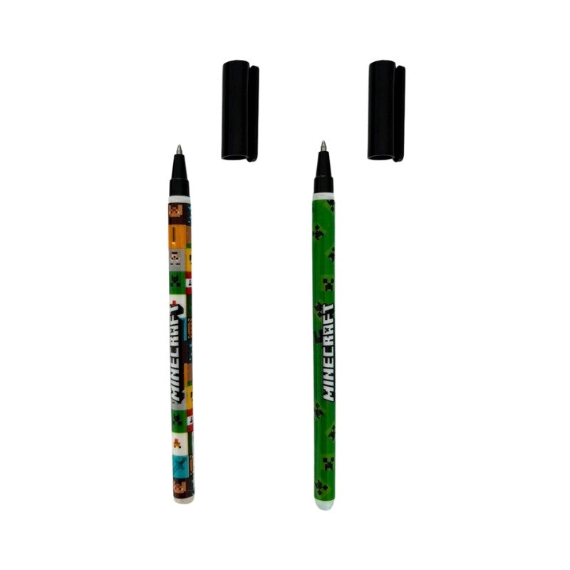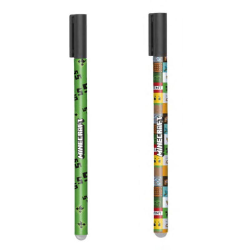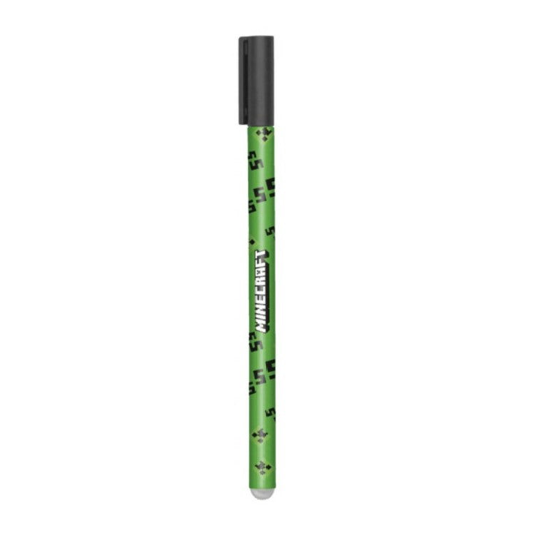Химикал Minecraft Pixel със синьо мастило и гума за триене. Черно капаче с клипс. Два дизаийна в серията: