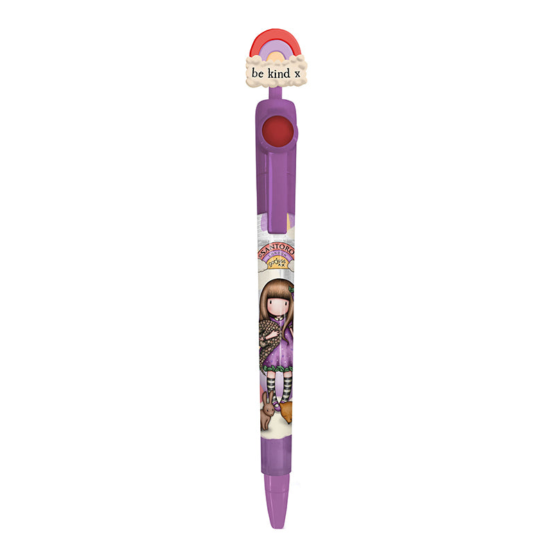 Въртящите се химикалки Santoro Gorjuss "Be Kind To All Creatures" са стилни и много вдъхновяващи. Тези химикалки се отличават с това, че разполагат с въртящ се механизъм, който допринася за забавлението по време на писане. Именно гуменият 3D талисман под формата на дъга в горната част на химикалките функционира като фиджет спинър! Химикалките осигуряват гладко и прецизно писане в черен цвят, което прави използването им удоволствие. Те са удобни за държане и предоставят комфорт и контрол при писане, а пък цветовете по тях носят много настроение. Размери: 1 х 17 х 1 см