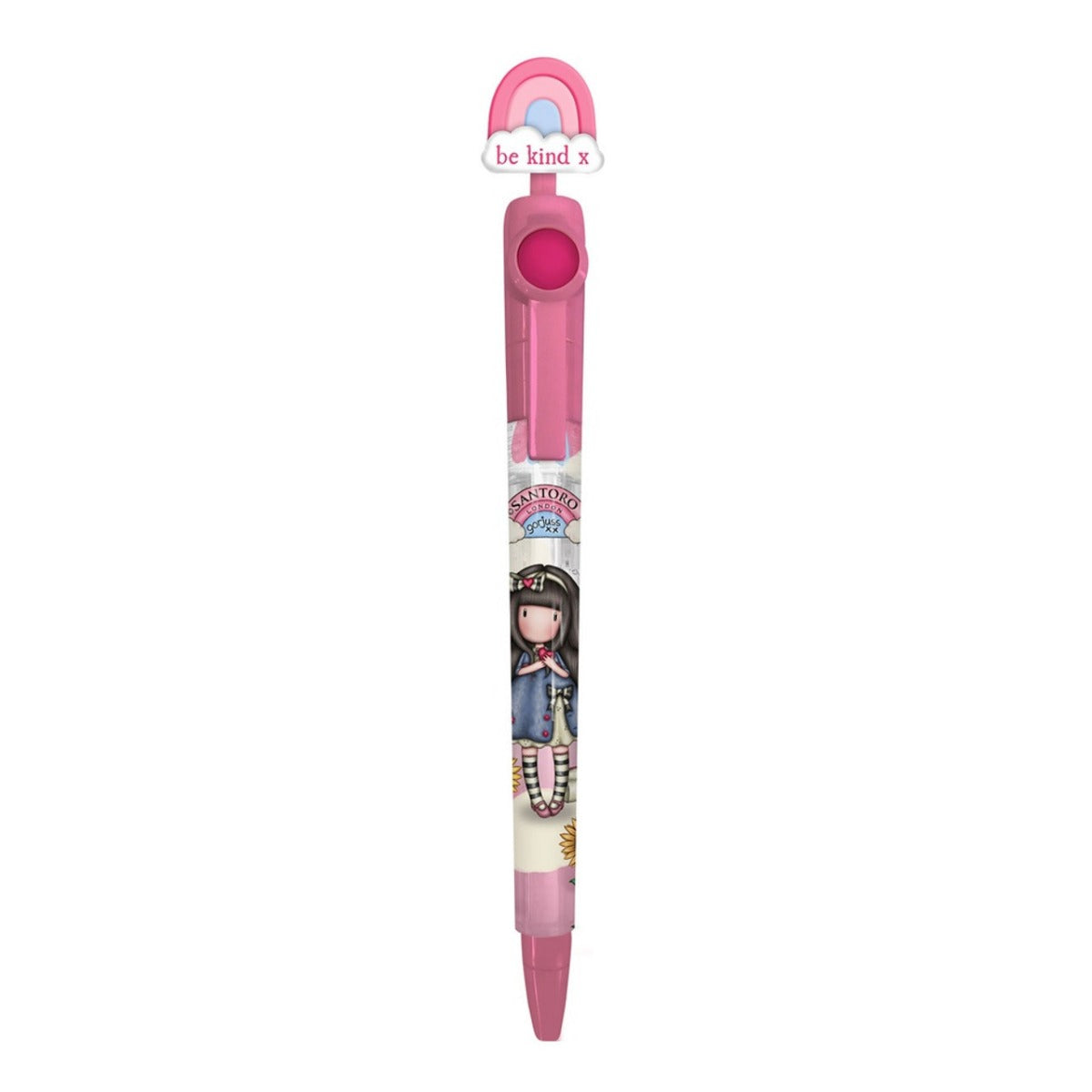 Въртящите се химикалки Santoro Gorjuss "Be Kind To Yourself" са стилни и много вдъхновяващи. Тези химикалки се отличават с това, че разполагат с въртящ се механизъм, който допринася за забавлението по време на писане. Именно гуменият 3D талисман под формата на дъга в горната част на химикалките функционира като фиджет спинър! Химикалките осигуряват гладко и прецизно писане в черен цвят, което прави използването им удоволствие. Те са удобни за държане и предоставят комфорт и контрол при писане, а пък цветовете по тях носят много настроение.