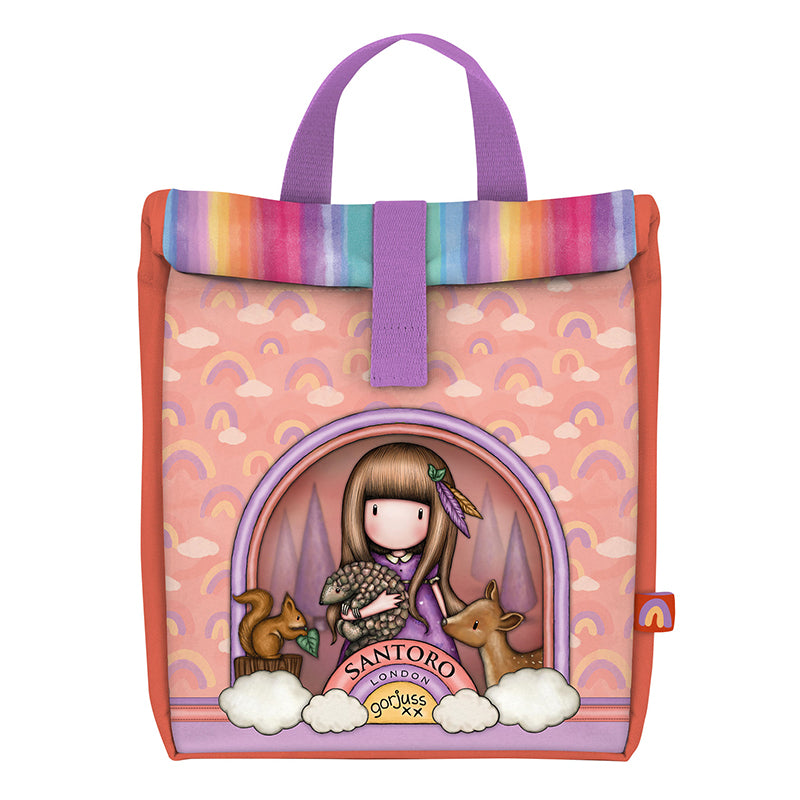 Чантата за храна Santoro Gorjuss "Be Kind To All Creatures" е стилна и функционална чанта, предназначена за съхранение и транспорт на храна. Тя е част от новата колекция на Santoro Gorjuss, която се отличава с изключителния си дизайн и вдъхновяващо послание. Чантата се отваря и затваря чрез сгъване на горната част и залепяне с велкро лепенка. Изработена е от висококачествени материали, които гарантират здравина и устойчивост. Чантата е изолирана, което я прави подходяща за съхранение на топли или студени храни и напитки, като помага да се запази температурата им за по-дълго време. Също така разполага с удобна дръжка за носене и достатъчно пространство за съхранение на храната. Подходяща е за употреба както на работа, така и в училище.