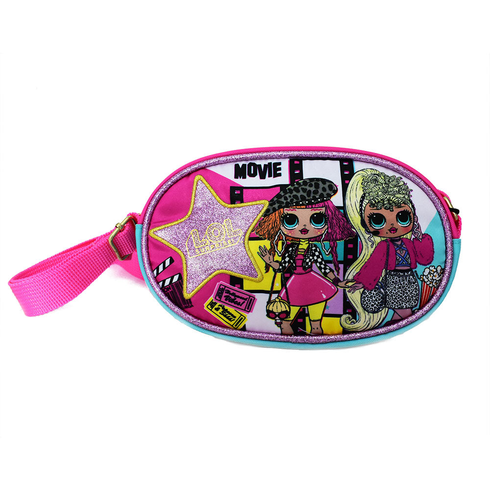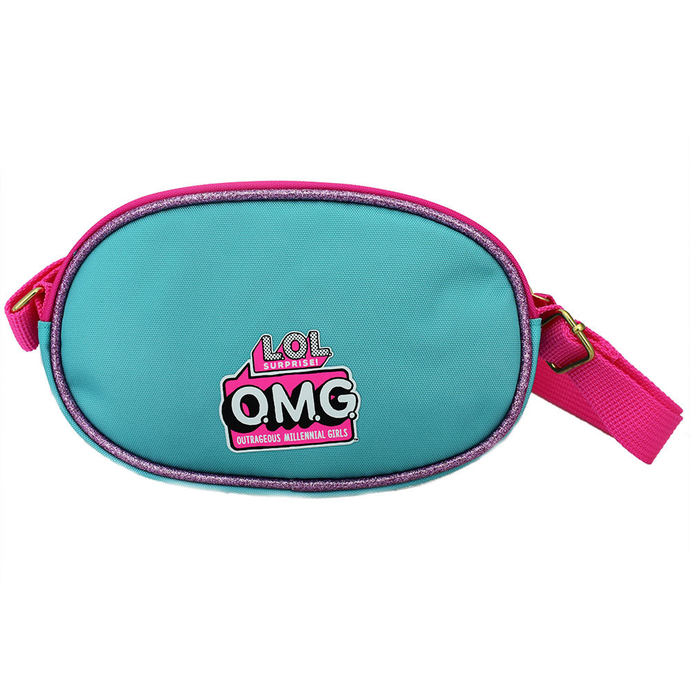 Чанта L.O.L. Surprise с едно отделение, което се затваря със златен цип и завършва с текстилен накрайник.