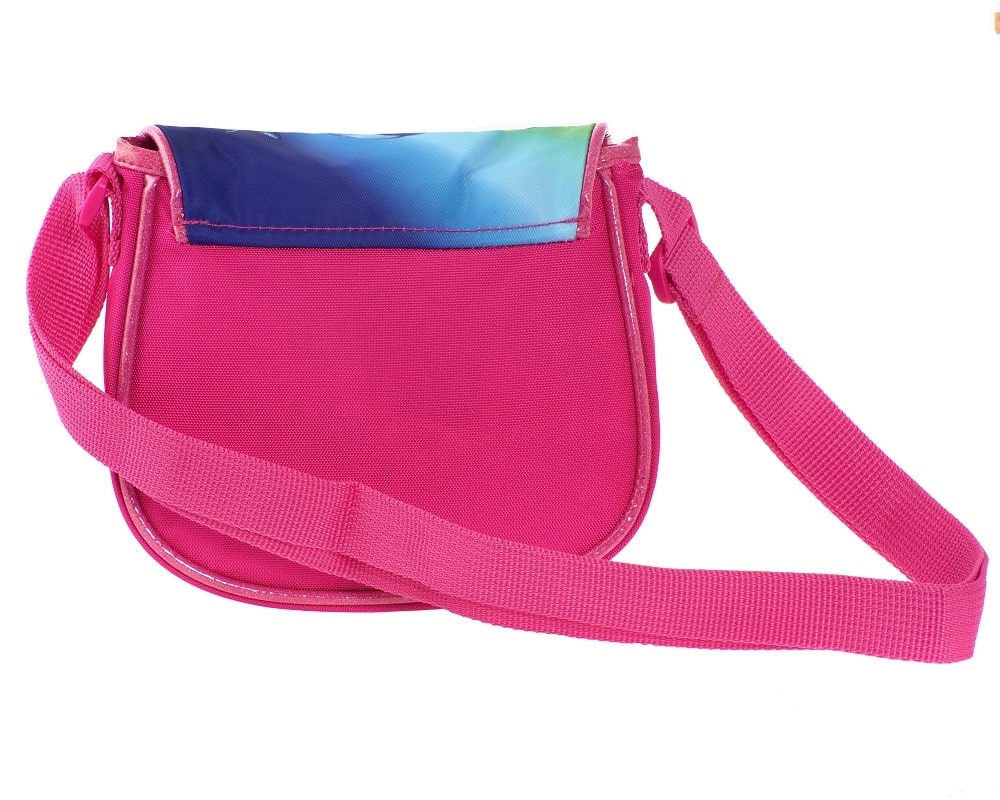 Удобна чанта Rainbow High, която ще събере всичко най-необходимо на малките госпожици - ключове, портмоненце и телефон. Тя е с илюстрация на героините от сериала, които са с уникални по рода си прически. Чантичката разполага с едно отделение и се затваря с капак, а презрамката е регулируема.